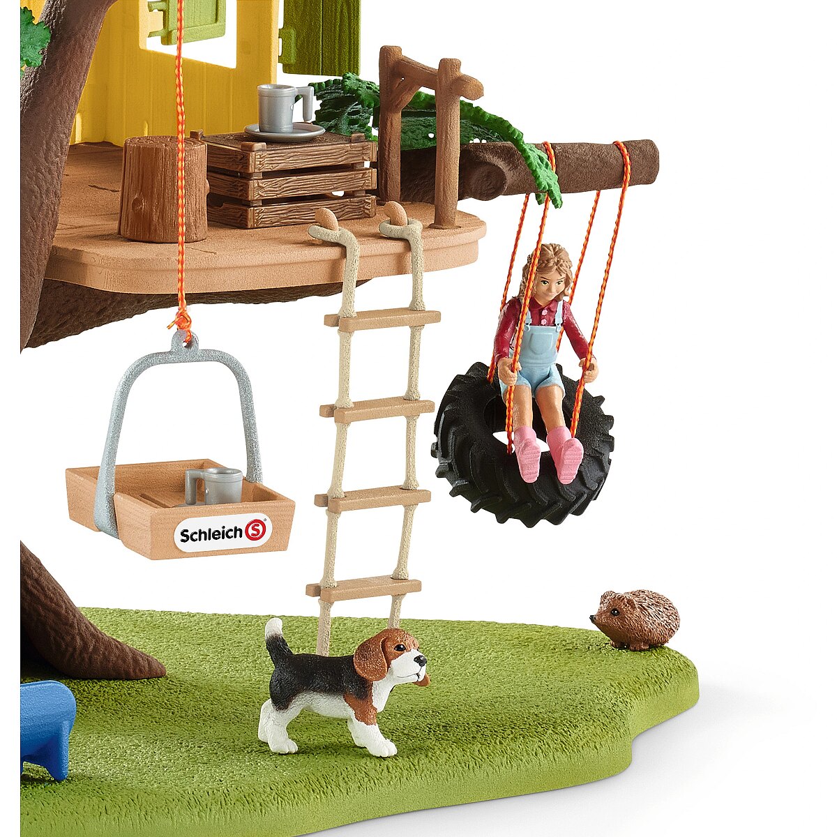 LongDesc - Ben and Sarah can lark about, play and picnic for hours in the schleich® tree house. Who hasn't dreamt of having their own tree house?The set contains a whole host of accessories and functions for hours of fun. With 2 human figurines, 4 animals and accessories. The schleich® figurines are exceptionally detailed, lovingly painted and allow children to play and learn at the same time.The two farmer family children, Ben and Sarah, can lark about, play and picnic for hours in the schleich® tree house. Who hasn't dreamt of having their own tree house? The set includes lots of functions for hours of fun.While Ben watches the animals from the viewing platform, Sarah slides down the slide. The puppy is already waiting for her. Sarah can climb back up the ladder into the tree house. The cute Beagle puppy can easily be brought up into the cosy tree house using the pulley. They can then all play together. The hedgehog also has his own home in the hollow in the trunk, and the little bird loves his little domain in the leaves.With 2 human figurines, 4 animals and great accessories. The set is the ideal addition to the 42407 large farm, which is available separately.The schleich® figurines are exceptionally detailed, lovingly painted and allow children to play and learn at the same time.