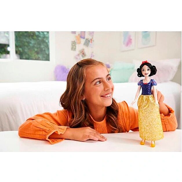Description - Introducing a Snow White doll inspired by the kind and steadfast princess from Disney's Snow White and the Seven Dwarfs. This poseable doll comes with a shimmering outfit and accessories that include shoes and a hairband. Dressed in her iconic style from the Snow White movie, she is ready for any adventure! The doll does not stand alone. Colours and decorative elements may vary. Inspired by the character from Disney's animated film Snow White and the Seven Dwarfs, the Snow White doll is ready to make her dreams come true. The bend point doll is dressed in her iconic style from the film, including removable shoes and hair band. The outfit consists of a glitter top and removable skirt with a design unique to Snow White. This adorable Disney princess has hair to play with for combing and styling hairstyles. A perfect gift for children to recreate their favourite moments from the film or make up their own stories. Fans can collect all the Disney Princess dolls for countless magical adventures. Sold separately subject to availability.