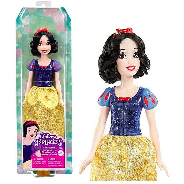 LongSummaryDescription - Disney Princess Snow White Doll with Sparkling Fashion & Accessories, Inspired by Disney Movie. Doll type: Fashion doll, Doll's gender: Female, Recommended age (min): 3 yr(s), Suggested gender: Girl. Height: 279.4 mm, Weight: 150 g. Material: Fabric, Plastic, Product colour: Multicolour