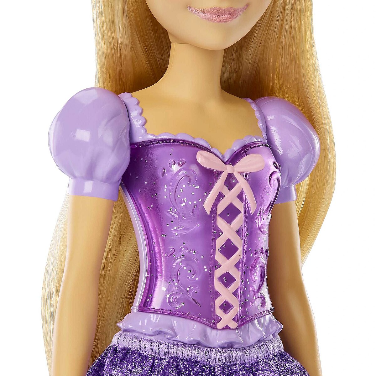 LongDesc - Meet this Disney Princess Rapunzel doll, inspired by the vibrant and creative heroine from the beloved Disney Tangled movie! This posable fashion doll is shown in a sparkling outfit and accessories that include shoes and a tiara. In her signature look inspired by the movie, this Rapunzel doll is ready for any adventure! Doll cannot stand alone. Colours and decorations may vary.