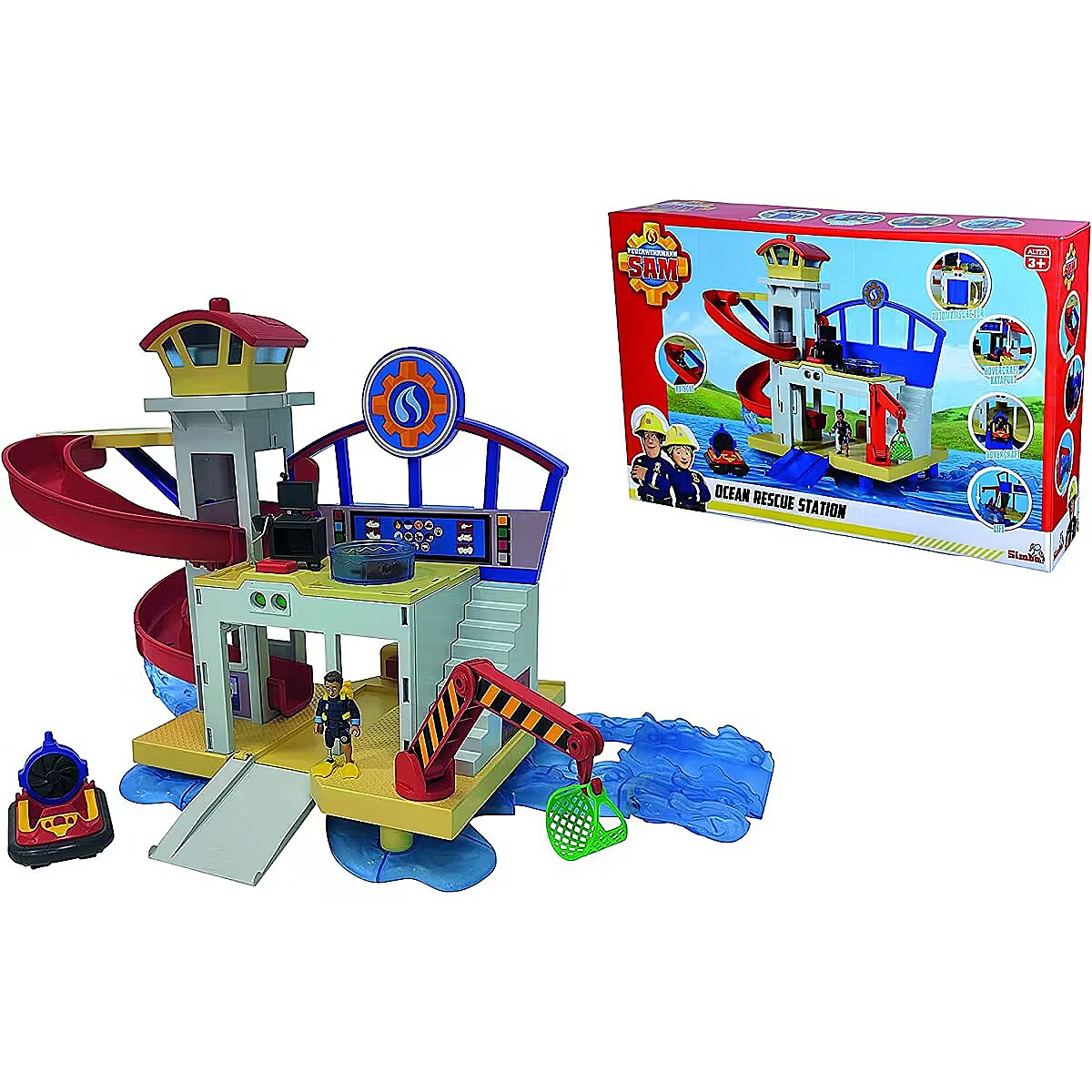 Description - Firefighter Sam Ocean Station  Rescue water station with helicopter landing pad, with slide, crane with net, hovercraft launcher, Jodie figure, sound and many accessories. TOYS FROM A TALE: Fireman Sam is an animation with a good dose of humour, where the title character. Firefighter Sam, not only puts out fires, but also helps residents with their everyday dilemmas. LARGE EQUIPMENT: The rescue water station features a slide, crane with net, hovercraft launcher, swimming pool and numerous accessories, and there is a helipad on the roof. The set includes a Jodie figure. MULTIPLE FUN OPTIONS: The ocean station has two levels, movable elements and consistent accessories and decorations that are water-themed; you can slide down the slide or float in the dinghy. AWAKE THE HERO IN YOU: with this Fireman Sam set with cartoon figure, you will immerse yourself in the world of the characters of the beloved animation, feel part of the rescue actions recreated from the screen. LICENSED TOY: The Fireman Sam series toys from Simba are original and are suitable for children over 3 years old. Runs on 2 x 1.5V R03/AAA batteries (included). The title character, firefighter Sam, lives with his nephews and friends in the charming town of Pontypandy. Their daily tranquillity is repeatedly enriched by surprising situations and adventures. Watching his adventures is a priceless dose of family entertainment. A warm animation whose characters win the hearts of small viewers all over the world. All children know this character and enjoy playing his role. The renowned toy company Simba presents many sets for children under the Fireman Sam licence, these are the official signature toys of the brand. They allow for hours of fun in firefighting actions realistic as if taken out of a fairy tale.