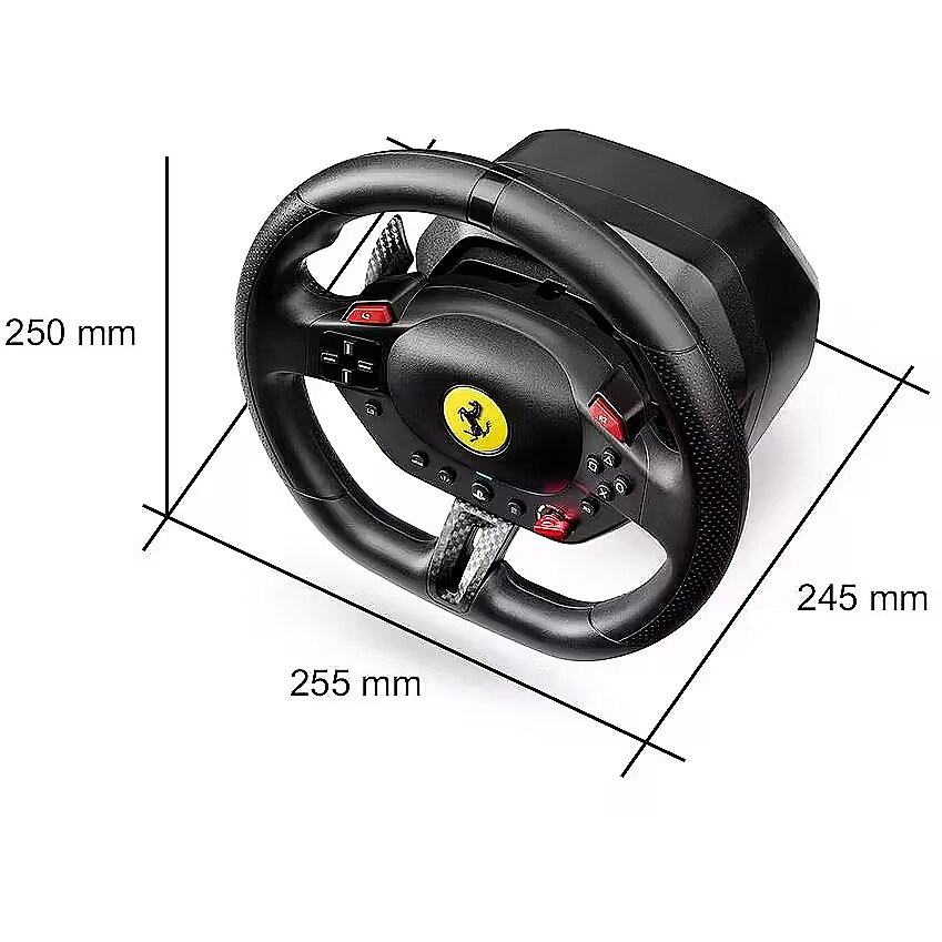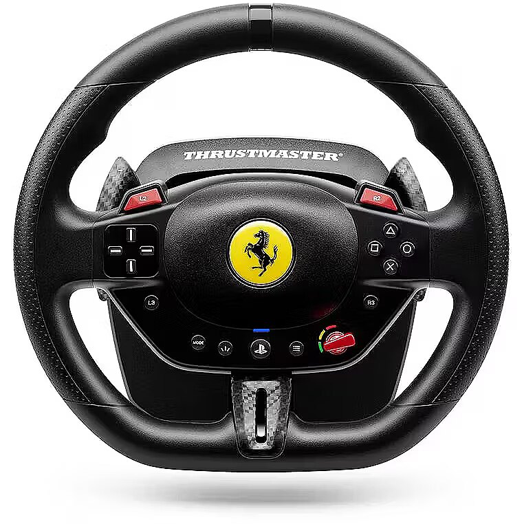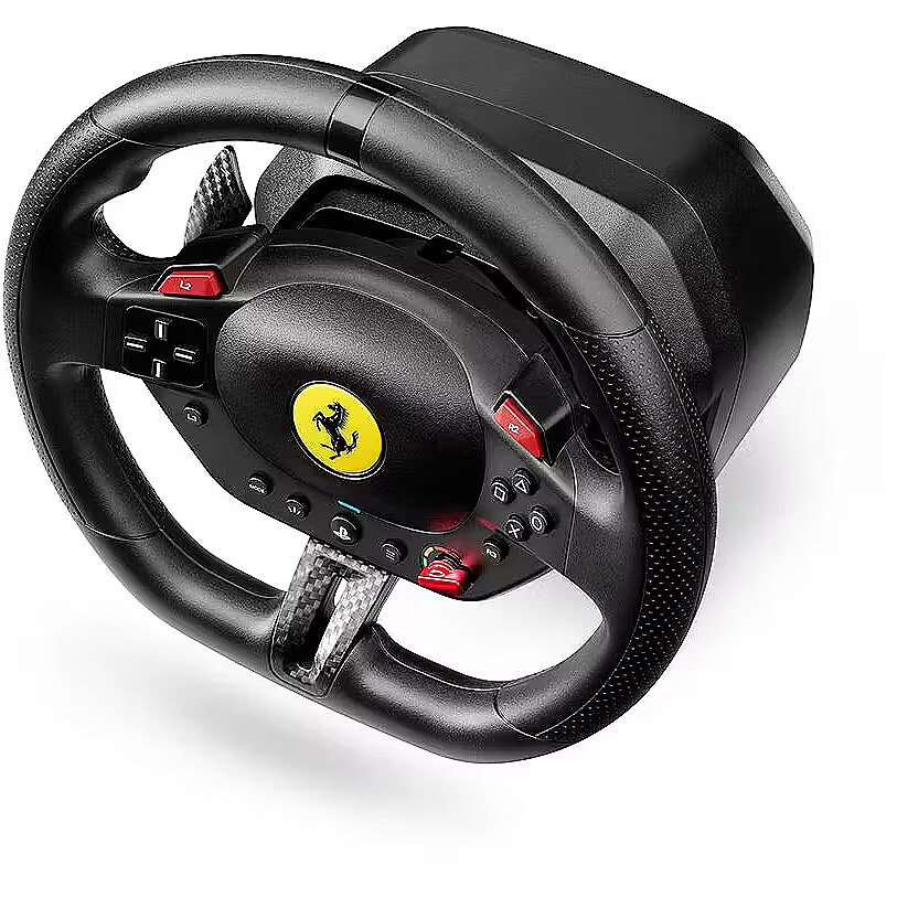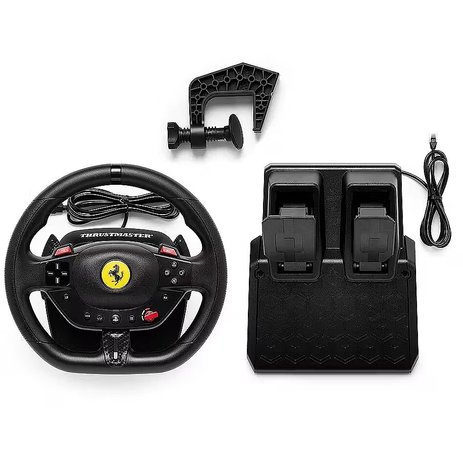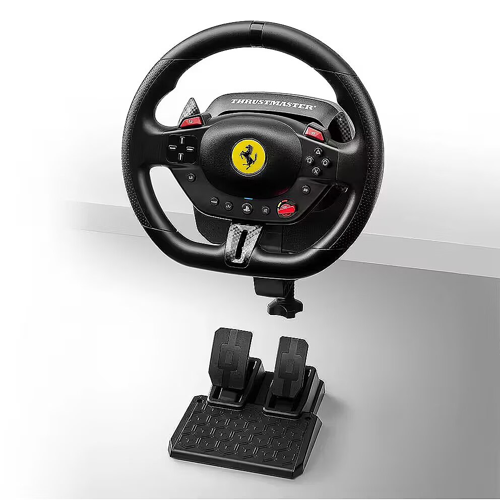 LongDesc - Get a dose of joy in every ride! Drive like a real race driver with T98 Ferrari 296 GTB: inspired by the Ferrari’s steering wheel with recentering technology, 240° of rotation and 3 driving profiles to suit all user levels.Under the hoodInspired by the Ferrari 296 GTBDrive like a real race driver with this official racing wheel (7:10 scale) inspired by the Ferrari 296 GTB. The wheel rim (10″ / 25.5 cm in diameter), with its imitation carbon accents and high-performance paddle shifters, will give you a truly lifelike experience of driving a Ferrari. Join the Tifosi and drive the world’s most famous Italian cars. Forza Ferrari!This product is officially licensed by Ferrari.A more immersive racing experienceBungee cord technology automatically returns the wheel rim to the centered position and provides linear resistance for real driving sensations. Thanks to its 240° rotation angle (compared with 180° for a standard gamepad), you can be more precise in your maneuvers and take winning trajectories. The racing wheel also features all the buttons found on a standard gamepad, for total control in games.Your racing games will be more intense and immersive than ever!3 driving support profilesThe selector dial inspired by Ferrari’s iconic Manettino lets you switch between the 3 driving support profiles: from the most realistic to the easiest to use. In this way, T98 Ferrari 296 GTB adapts to all gamer profiles — from beginners to experienced drivers. Switch from one profile to another on the fly and share unforgettable moments with family and friends.Compact and easy to installThe racing wheel can be installed quickly and without any tools, thanks to its clamping system for mounting on desks and tables (up to 1.8″ / 4.5 cm thick). Its compact, space-saving design makes it easy to put away after each gaming session. No additional software is required: just plug and play!Pedal set with Hall effect sensorsA 2-pedal pedal set with accelerator and brake is included. The pedals feature Thrustmaster’s patented H.E.A.R.T. Hall effect sensors to ensure that the product will retain its razor-sharp precision for years to come. The pedal set’s compact design allows it to even be installed and used in small spaces.Great for Forza Horizon 5 on PS5 and PCAs T98 Ferrari 296 GTB is an officially-licensed PlayStation product, the racing wheel functions flawlessly on PS5 and PS4. It is also compatible with PC (Windows 10/11). T98 Ferrari 296 GTB is great for Forza Horizon 5, and is plug and play in most racing games.*Complete list available on the official Thrustmaster website.