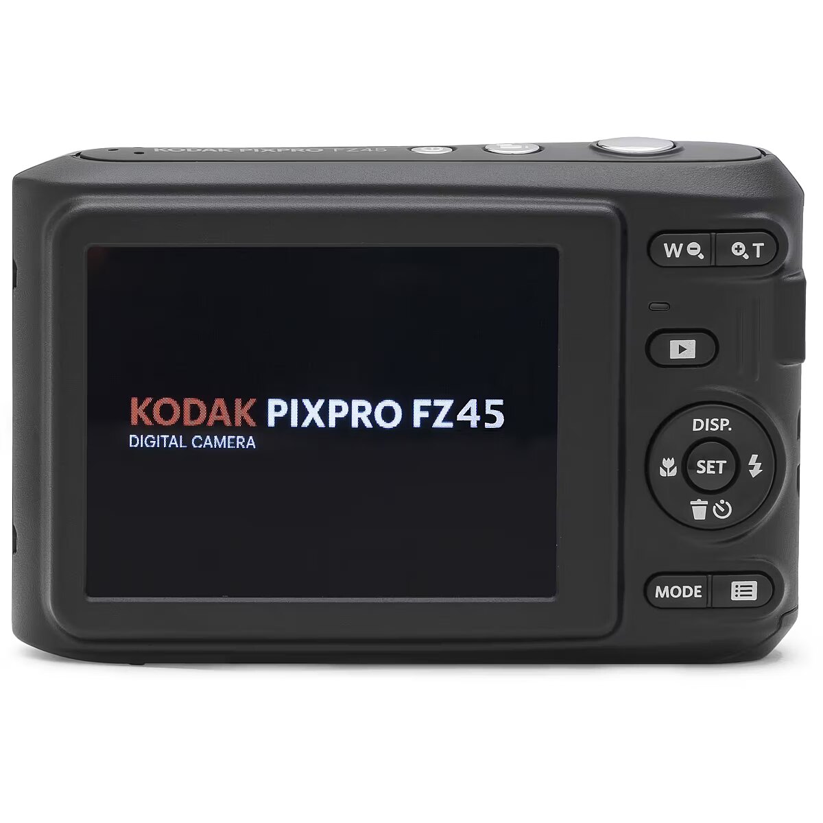 description_en - 4× optical zoom 16 MP CMOS sensor 1080p Full HD video 27 mm wide angle lens 2.7" LCD 2 × AA batteries Introducing the FZ45 Friendly Zoom collection from the KODAK PIXPRO family of digital cameras. Compact, intuitive and oh so easy to use, the FZ45 is the perfect starter camera to take anywhere you go. One-touch video, red-eye removal, face detection and convenient AA batteries are just the start. 27 mm wide angle lens