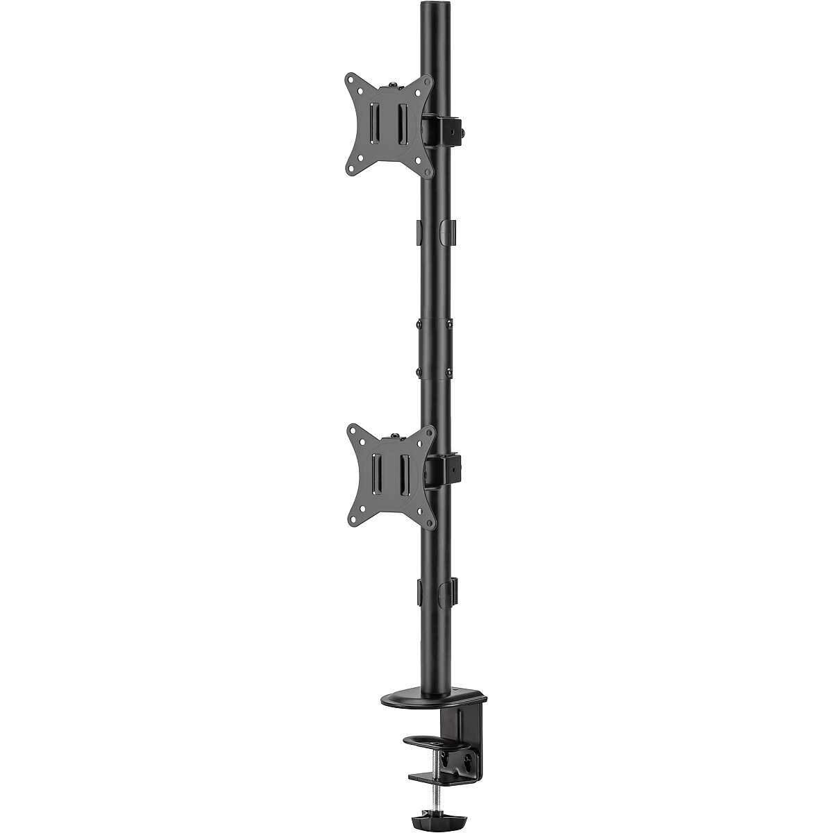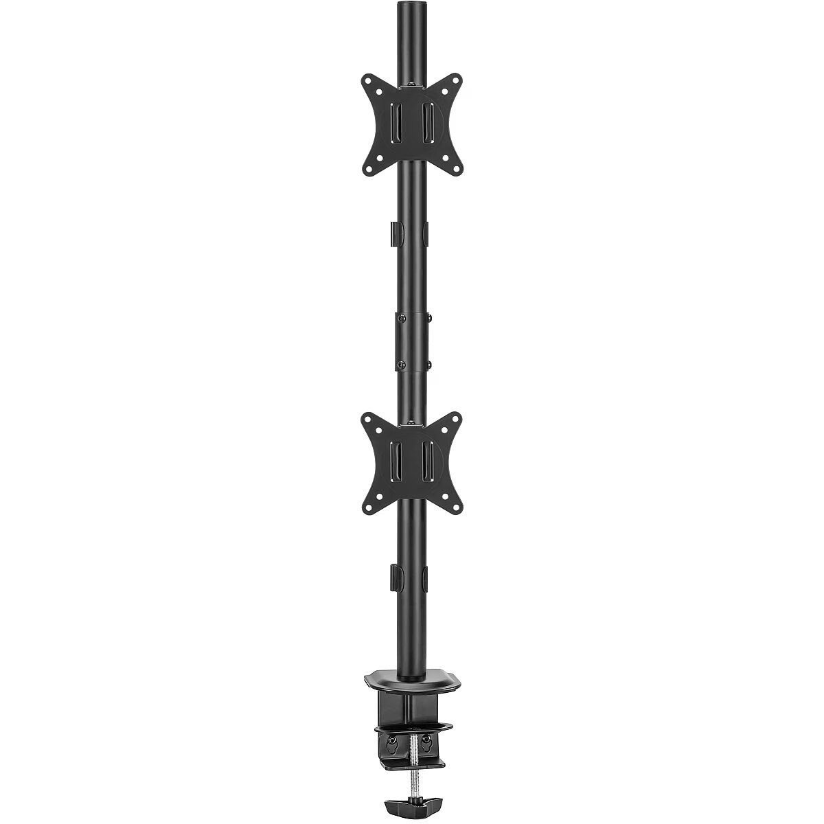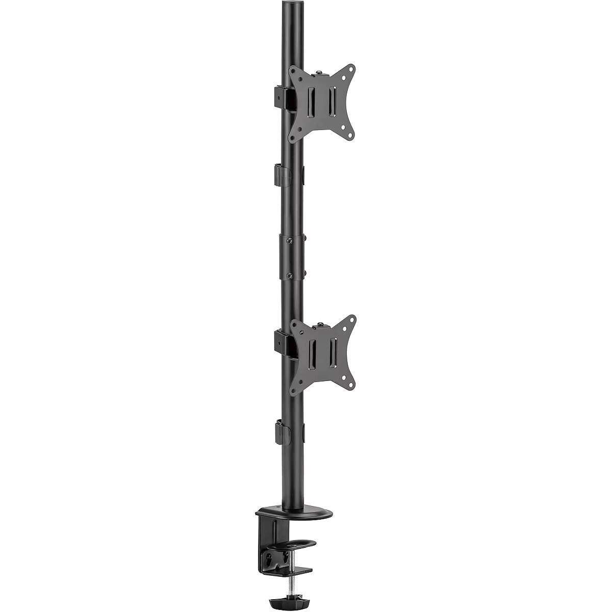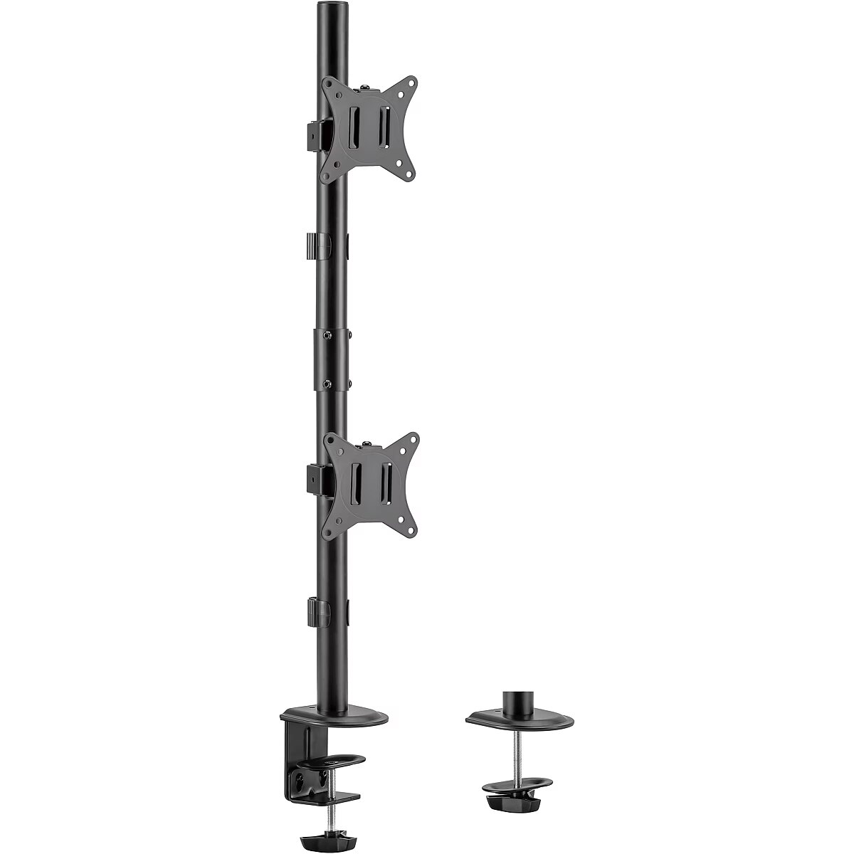 Description - Adjustable 2-display vertical desk mount, 17”-32” Position your screen perfectly For easy mounting two displays above each other Each monitor mount is height adjustable and allows swivel, tilt and rotation Works with almost any LCD monitor (max. 32") Strong desk clamp or grommet for easy and secure fixation on your desk Built-in cable management for an organized and neat workspace VESA compatible (100 x 100 mm and 75 x 75 mm)