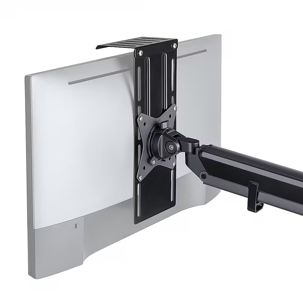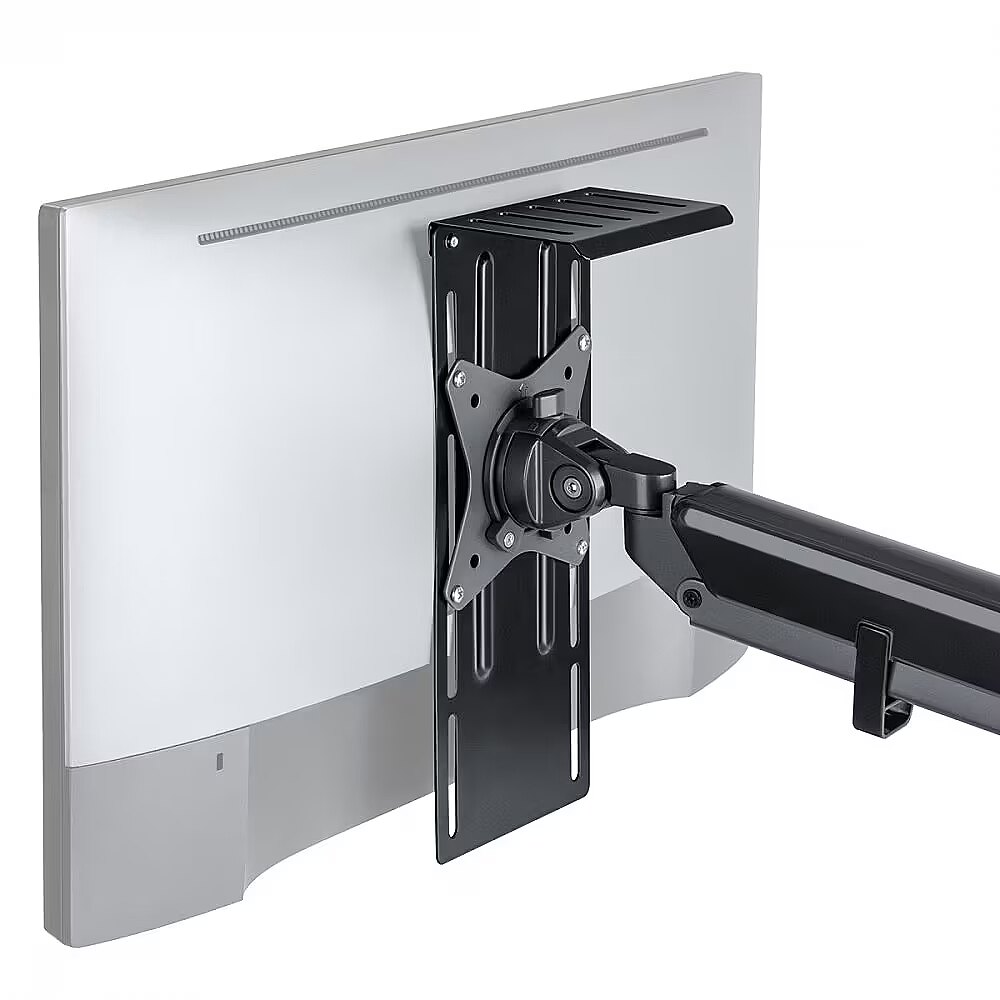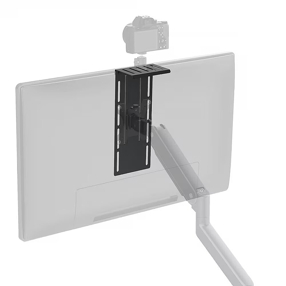 Description - A camera or camcorder holder attached to a monitor is a practical solution that allows you to place the camera or camcorder in the ideal position for creating video or photos, which allows you to obtain the best viewing angle and comfort of work. The perfect solution for convenient video conferencing or streaming. The mount can be attached directly to the mounting holes on the back of the monitor, or to a mount attached to the monitor. It is compatible with mounting holes compliant with the VESA 100x100 mm standard. Height adjustment and the possibility of mounting the shelf both forward and backward allow you to adjust the position of the mounted devices to your individual needs.