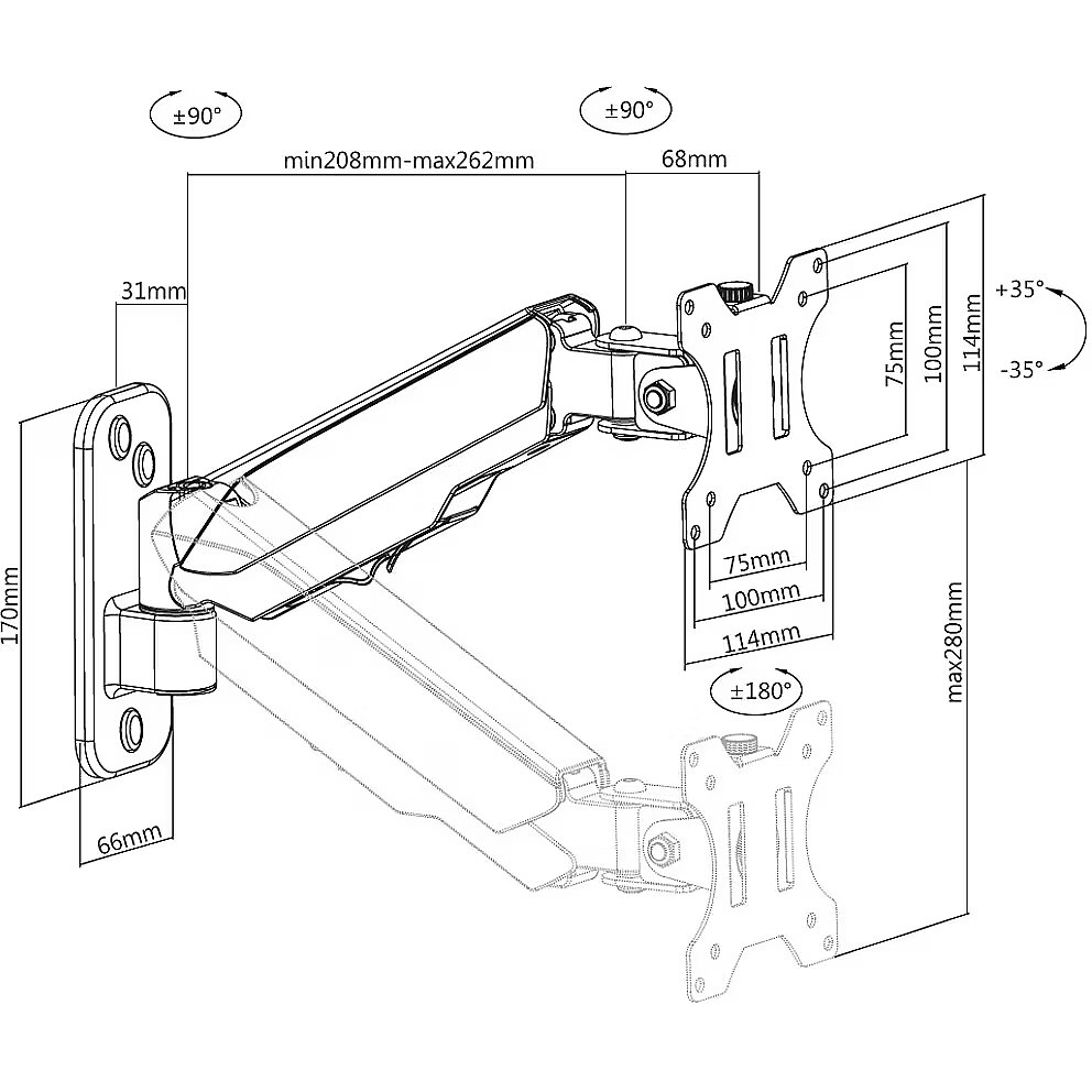 URL - https://www.techly.com/en_ty/wall-support-with-gas-spring-for-tv-17-32-black.html