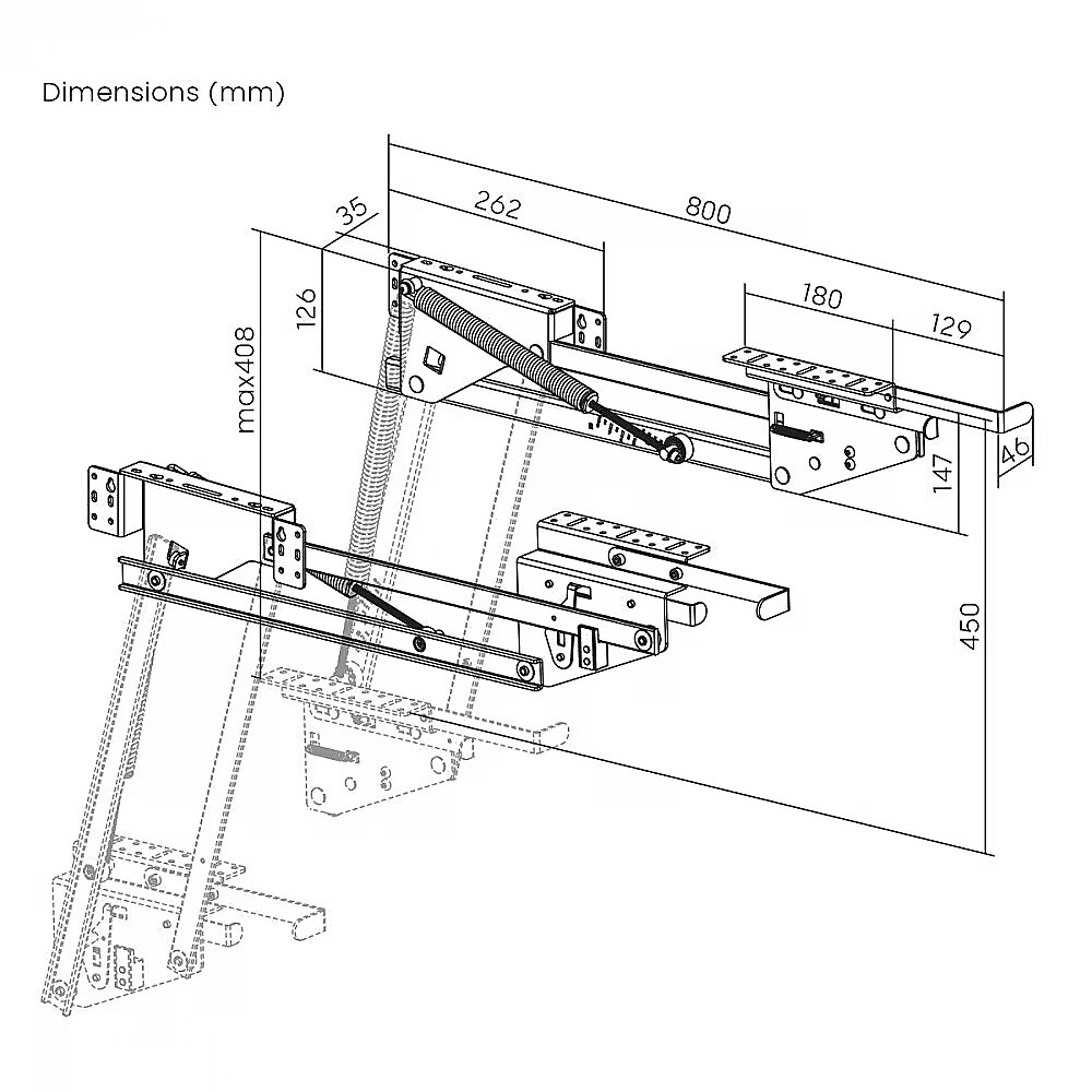 productName - Elevator, Macealn pull-out kitchen shelf frame, built-in 5-20kg. 820x168x106mm MC-497