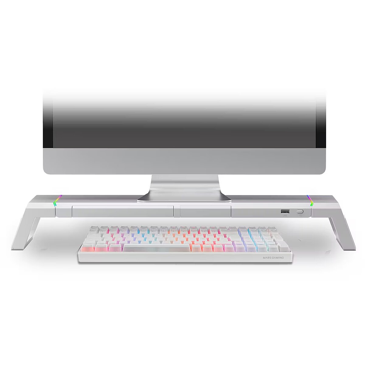 LongProductName - MGS-ONE White Chroma RGB Monitor Stand Adjustable Size Smartphone and Tablet Stand Front USB 2.0