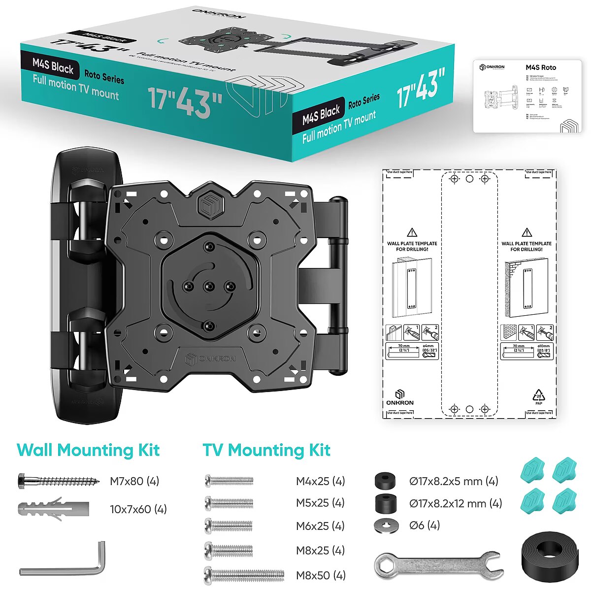 Vendor Homepage - onkron.us/products/full-motion-tv-wall-mount-for-17-43-inch-lcd-led-flat-screens-up-to-77-lbs-onkron-m4sr-b-black?_pos=1&_sid=3ad892ca9&_ss=r