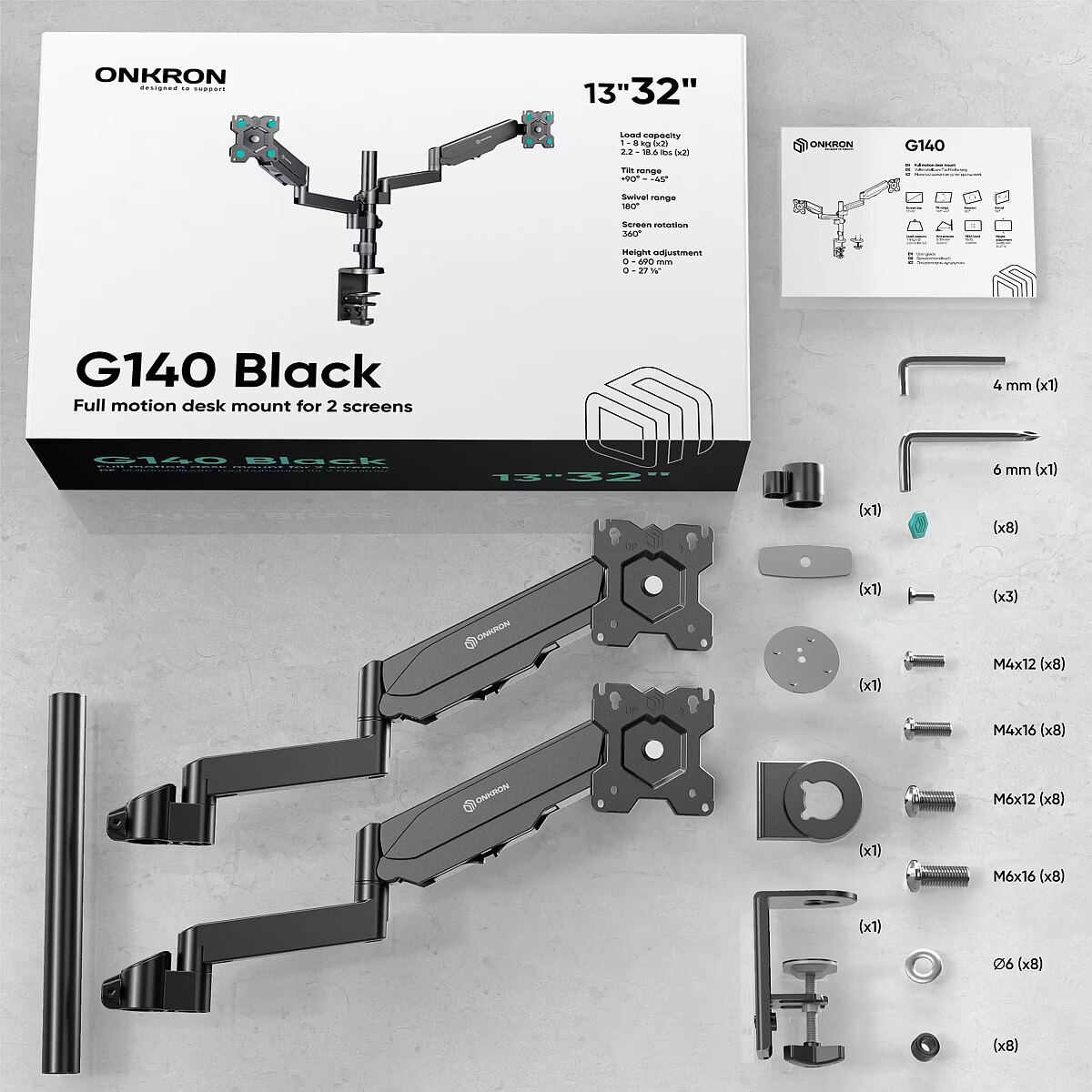 Onkron Desk Mount for 2 Monitors, 13-32"