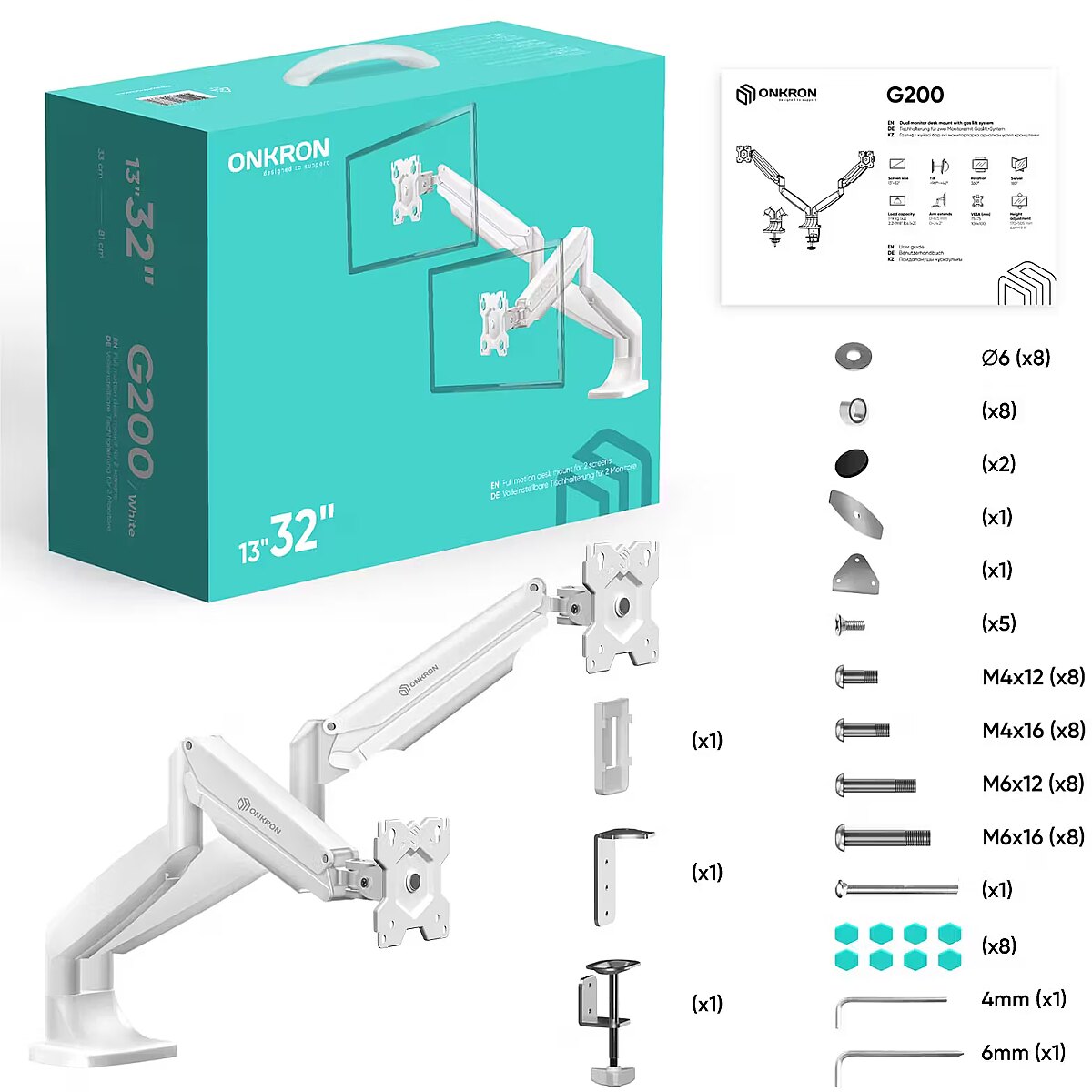 Vendor Homepage - onkron-uk.co.uk/products/onkron-dual-monitor-desk-mount-stand-for-23-to-32-inch-lcd-led-monitors-up-to-9-kg-g200-white?_pos=2&_sid=60ff385bf&_ss=r