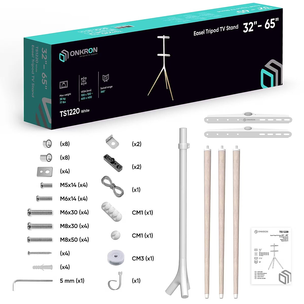 Vendor Homepage - https://onkron-uk.co.uk/products/onkron-tripod-easel-tv-stand-for-32-65-inch-led-lcd-oled-screens-up-to-35-kg-ts1220-white?_pos=1&_sid=f868409cb&_ss=r