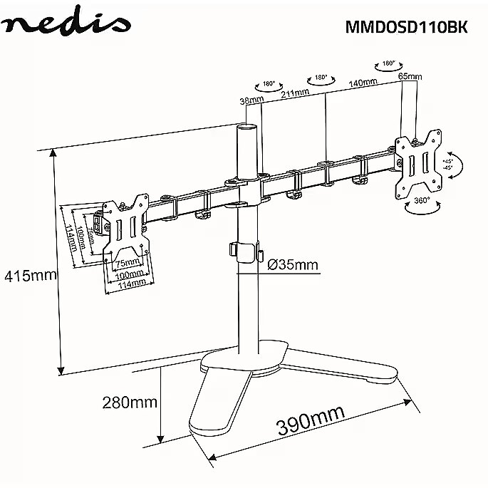 Nedis Desk Monitor Stand for 2 screens, 15-32"