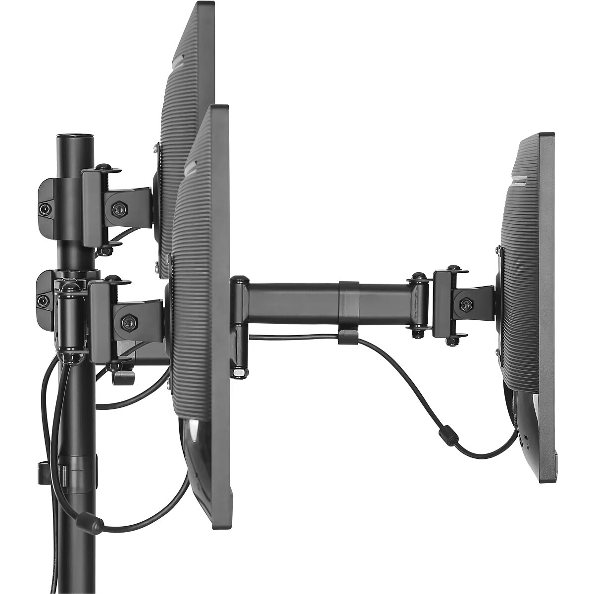 Included cable clips guide cables along the pole and arms, keeping the desk tidy and freeing up space for accessories.