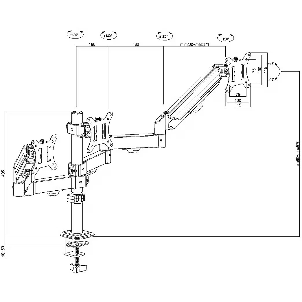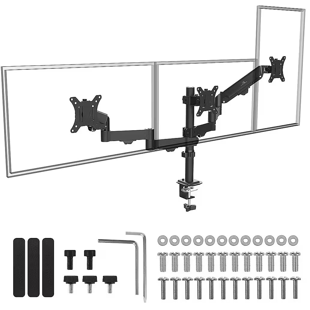 Maclean Triple monitor mount, gas spring, 17-27"
