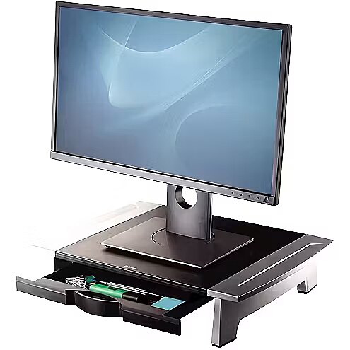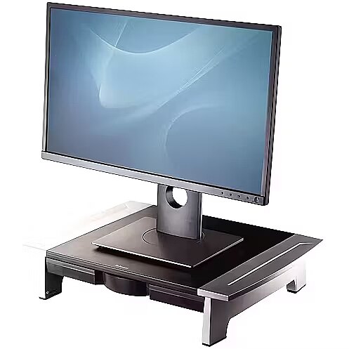 LongDesc - A few easy adjustments to your workstation can make a huge difference to your daily routine. Moving your head to view your screen or to read documents requires you to tilt and turn your neck and upper back. Positioning your screen incorrectly can put serious strain on your eyes, neck and shoulders which is why this Fellowes computer stand is a necessity for your workspace as it allows you to place your monitor at a more ergonomically-correct viewing position to suit you. This adjustable monitor stand can support large CRT or TFT monitors with a maximum weight of 36 kg and its space saving design allows you to stow your laptop underneath the monitor riser for in-office use. Accommodate the Ideal viewing angle that best suits your needs, the Office Suites computer stand features five height adjustable settings (100-150mm) allowing you to find a comfortable screen position accustomed to you. This monitor riser has been tested by FIRA International Ltd to comply with the ergonomic requirements set out in European Health and Safety Legislation: EN ISO 9241-5.