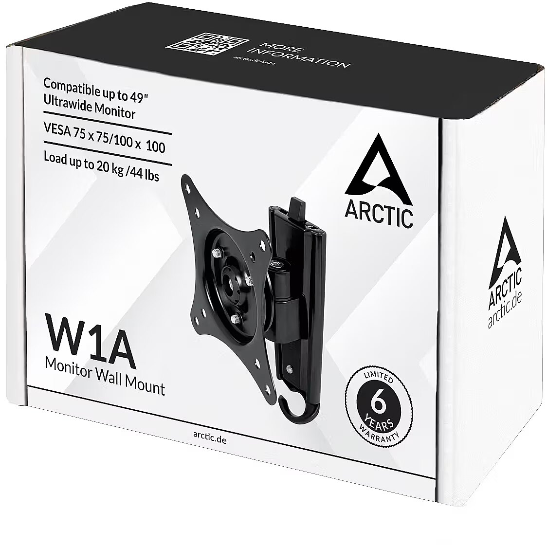 LongDesc - The ARCTIC W1A is a single pivot 3 axis articulation bracket mount, offers smooth adjustable screen angle with 360° rotation, 60° swivel and ±15°tilt. The ball joint design gives the flexibility to perfectly position your monitor to reduce eye, neck, shoulder and back strain. It mounts closely to the wall and maximise your work area. Compatible with monitors from 13" to 30", the two-piece direct mounting system allows quick installation and support up to 20 kg in weight.Maximise Your WorkspaceThe monitor close-wall mount system takes the least space on your desk and thus maximises your work area. It is also an ideal solution for touch screen applications.Smooth Finger Adjustable ScreenThe ARCTIC W1A wall-mount is integrated with a smooth ball-joint design, which delivers the most flexibly adjustable screen angle with 360° rotation, 60° left-right swivel and 15° afterward and backward tilt.Perfect positioning to reduce eyes, neck, shoulder and back strainThe ball joint design allows easy finger adjustment, giving the flexibility to adjust your monitor to a perfect position, hence prevent undue eye, neck, shoulder and back strain with optimal viewing position.Sturdy and StableThe ARCTIC W1A ensures a secure mounting system to your monitor. Equipped with security lock and two screw-lock system to prevent slipping and enhance stability.Quick-Fix Two-piece Direct MountThe 2 –pieces direct mount system is designed for quick and easy installation. Simply Screw the mounting on your wall and monitor, assemble by slide it in the mounting rail.Cable ManagementThe simple design cable management hook keeps your cable neatly together behind your monitor.VESA 75 / 100With the VESA 75 x 75 / 100 x 100 compliant mounting brackets, it is designed for monitors from 13" to 30" with up to 20kg of weight. Compatible with all popular desktop monitor such as LG, Viewsonic, HP, NEC, AOC and Dell.