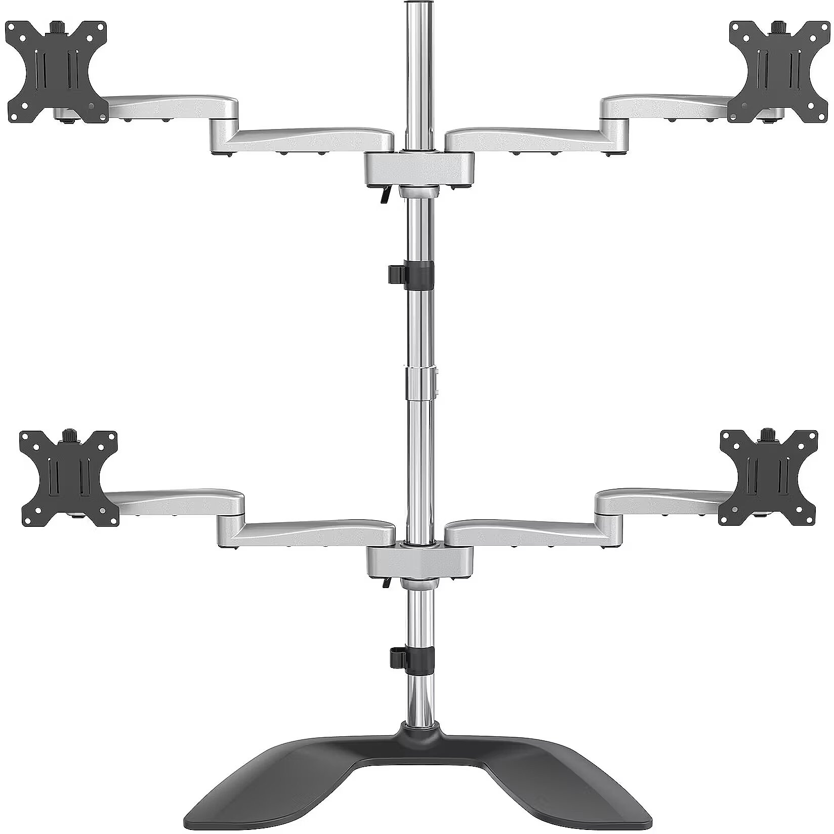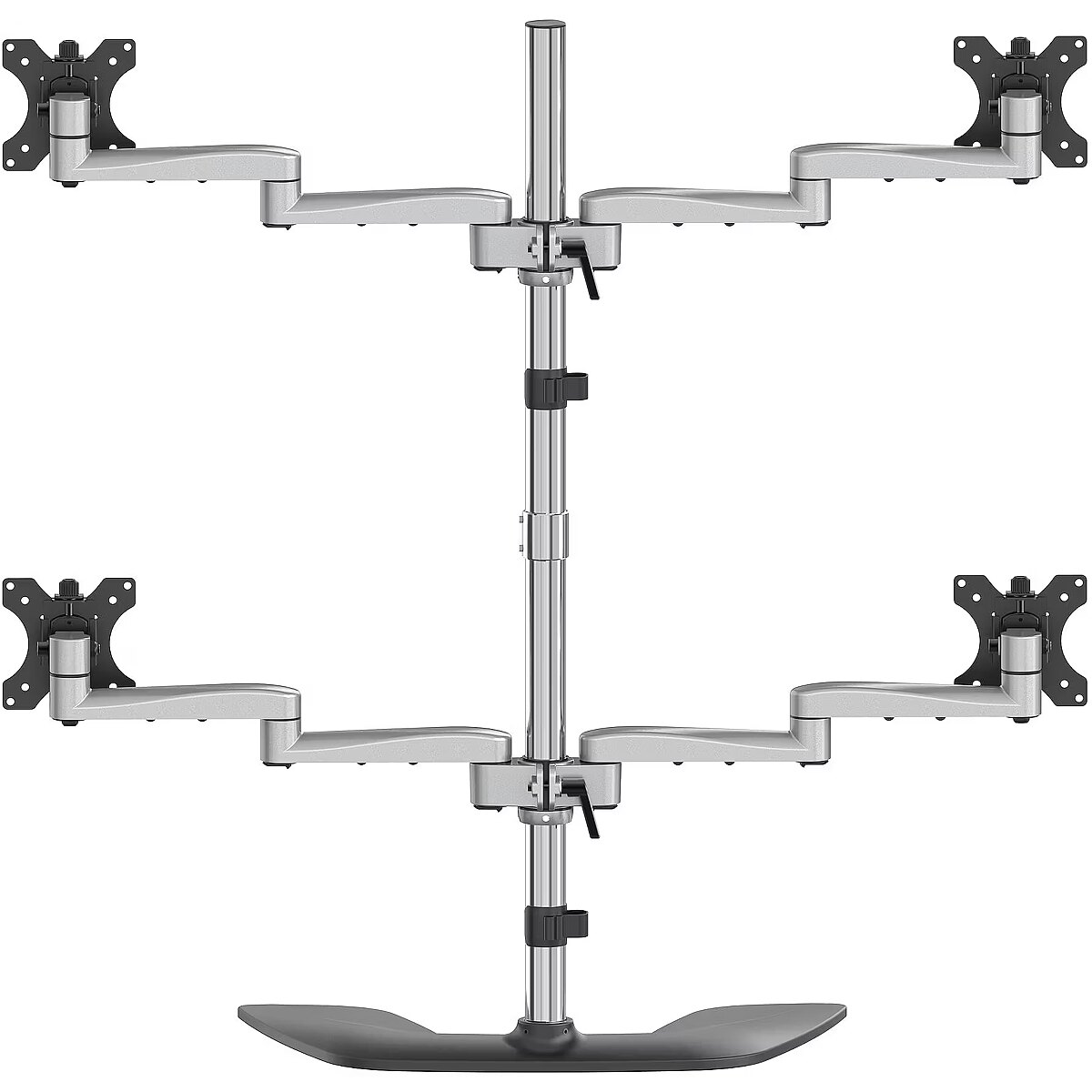 ProductName - Desktop Quad Monitor Stand - Ergonomic VESA 4 Monitor Arm (2x2) up to 32" - Free Standing Articulating Universal Pole Mount - Height Adjustable/Tilt/Swivel/Rotate - Silver