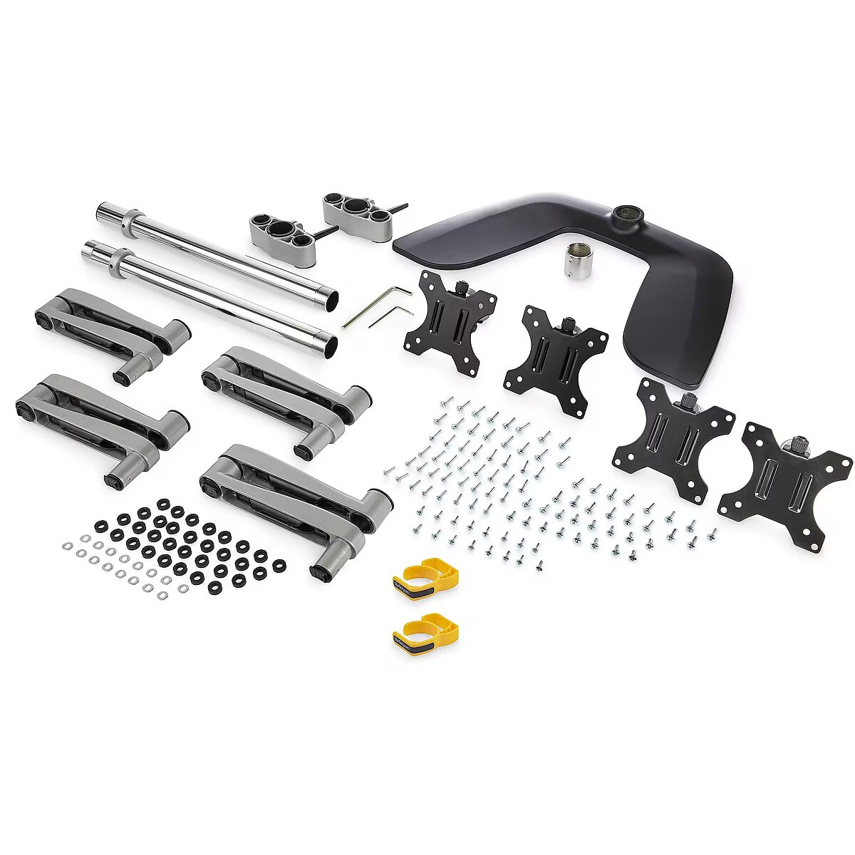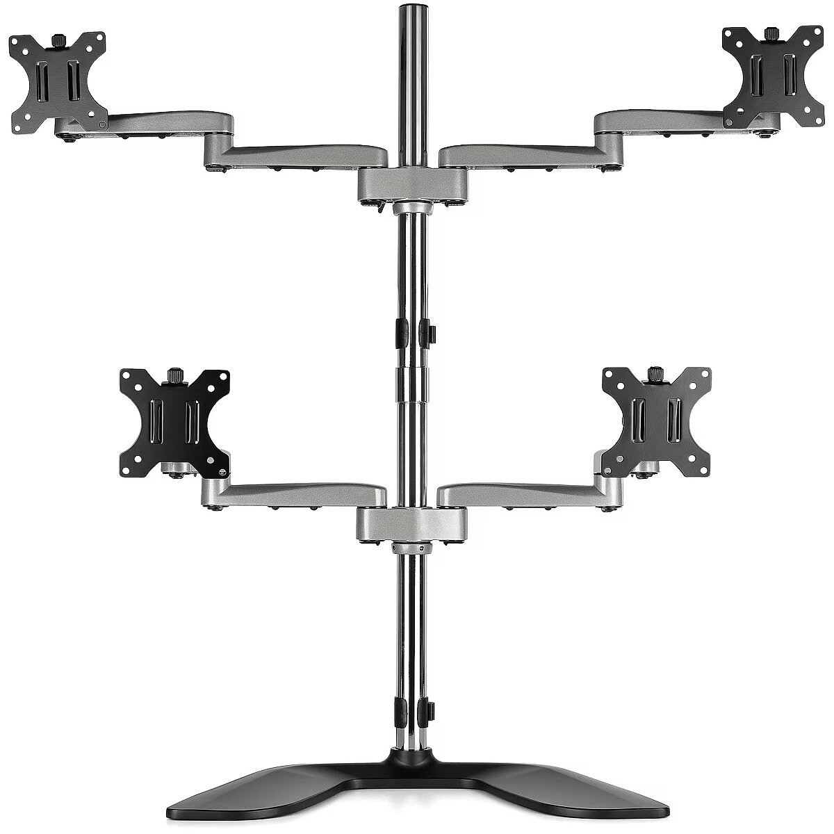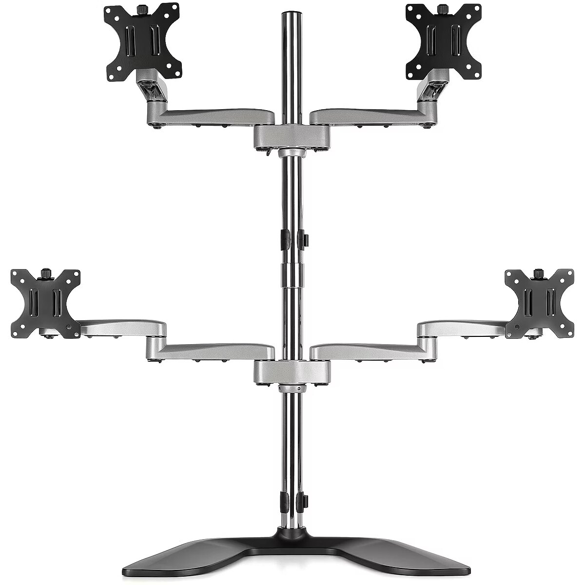 Title - StarTech.com Desktop Quad Monitor Stand - Ergonomic VESA 4 Monitor Arm (2x2) up to 32" - Free Standing Articulating Universal Pole Mount - Height Adjustable/Tilt/Swivel/Rotate - Silver