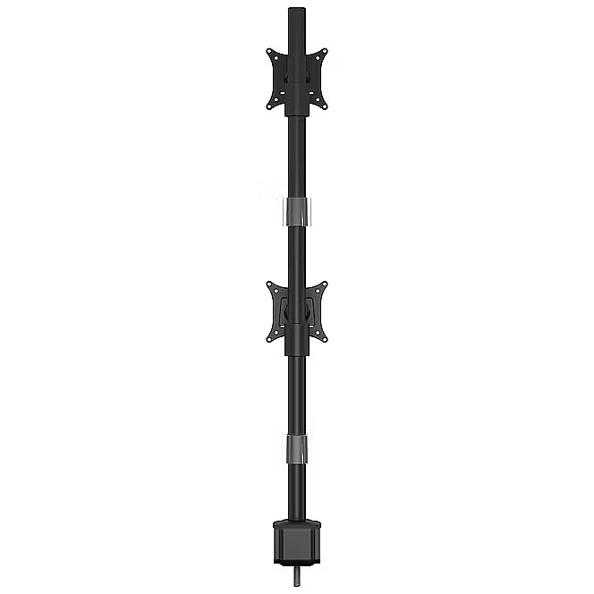 LongDesc - M VESA Deskmount Officeline Dual Vertical Black frees up space and allows positioning of your display for greater productivity. Flexible, sleek and streamlined, the Dual Vertical version you can position two screens ontop of each other. Create a monitorwall on your desk.Reposition your LCD´s with ease and align them with the ones positioned next to each other. Tilt, upwards tilt, left or right is now just a matter of your choice.Finally comfort and ergonomics is really possible to achieve while building a multiple screen solution on a desk. With the M VESA Deskmount Officeline Dual Vertical Black you can easily manage each screens specific position.The M VESA Deskmount Officeline Dual Vertical Black works with almost all LCD screens on the market supporting VESA standards of 75/100mm holding screens weight up to 8 kg each, height of pillar is 710mm allowing two screens up to aprox combined 930mm height.