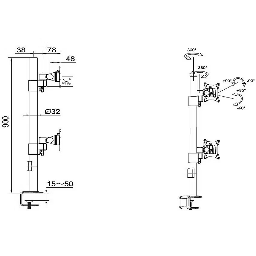 Description - MB VESA DESKMOUNT OFFICELINE DUAL VERTICAL BLACK