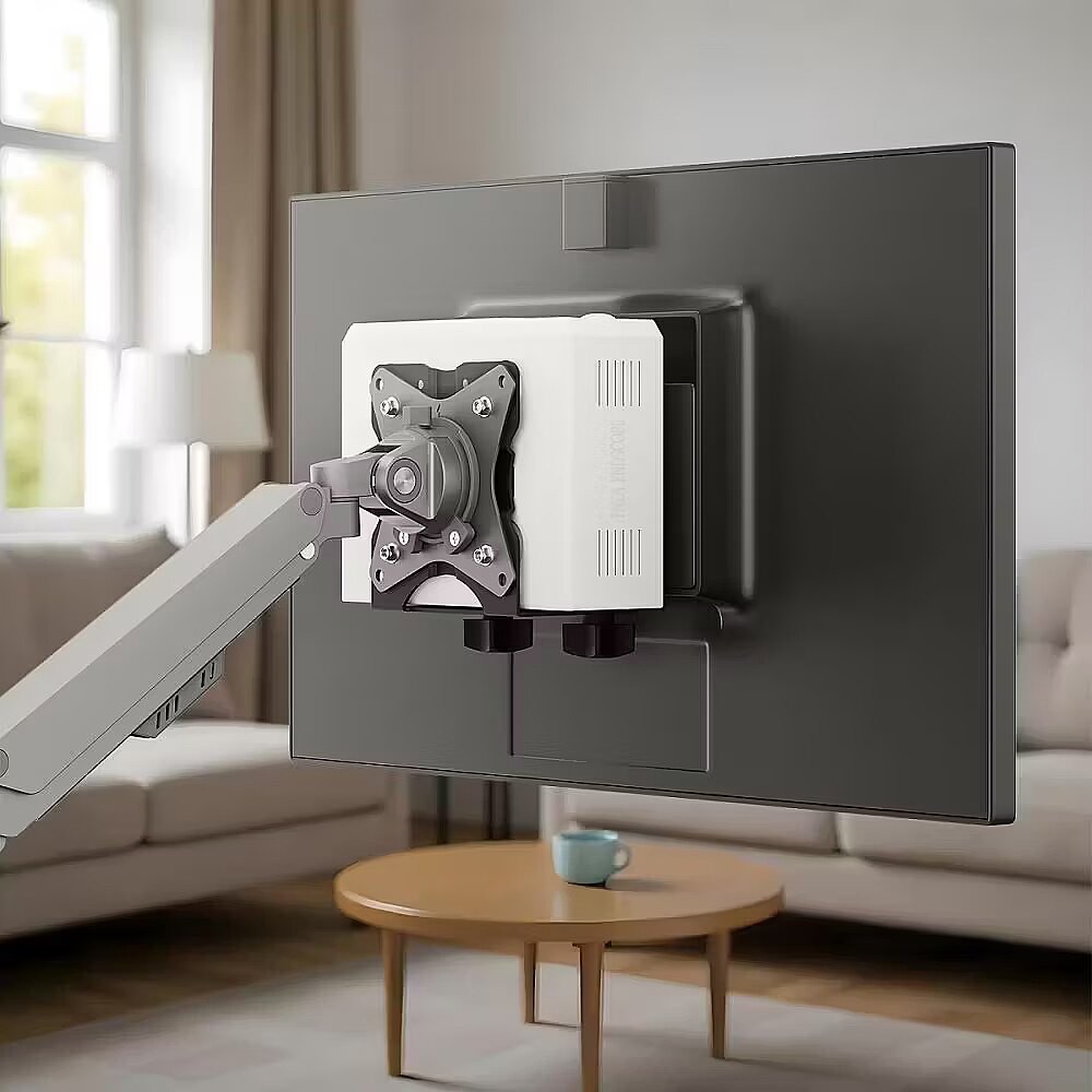 Description - The Maclean MC-115 mini computer mount is a practical and solidly constructed solution that will work well in both office and home environments. Thanks to its adjustable depth from 17 to 70 mm, it allows secure and stable mounting of a wide range of devices - from thin terminals to more complex mini PCs. Designed with versatility and compatibility in mind, the mount is equipped with the VESA standard, allowing it to be mounted both directly on the wall and on the back of a monitor, arm or other bracket compatible with this system. An additional advantage of the MC-115 holder is the presence of a safety strap, which prevents the computer from accidentally slipping out of the holder - even during intensive use or when mounted in a place exposed to vibration. Robust design can withstand a load of up to 5 kg, which means that the holder can easily handle most of the mini computers available on the market. Thanks to the well-thought-out design, easy installation and convenient access to the ports and buttons of the device is possible, making this holder a solution that is not only safe, but also extremely functional and ergonomic. An ideal choice for those who value order, space saving and aesthetic development of the workspace.