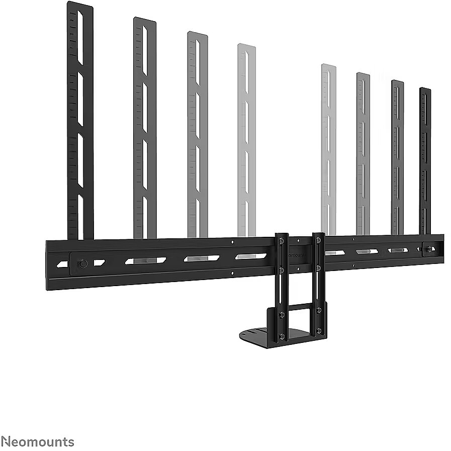 LongDesc - The Neomounts AV50-500BL is a universal PTZ/UC camera shelf kit designed for 43" displays and larger, with VESA hole patterns ranging from 200x200 up to 800x600 mm. Built for durability and versatility, the kit supports devices up to 5 kg and can be installed either above or below the display. Both the camera support and the backplate brackets are height-adjustable for maximum flexibility.Compatible with virtually all* PTZ/UC cameras, the AV50-500BL guarantees broad applicability. The camera mounting allows both width and height variation, while the VESA frame adjusts in four positions (200/400/600/800). The kit is suitable for VESA orientated wall, floor, desk, and ceiling mounts. Despite its versatility, installation is simple and precise thanks to ruler-guided alignment.* The Neomounts AV50-500BL kit is truly universal, compatible with any PTZ/UC camera that fits within the bracket?s range (see line drawing). In addition, it is specifically designed for the following models:- Bose Professional VB-S- Poly Studio R30/X30/X32 and Studio V12- Logitech Meetup 2 and Rally Camera- Yealink MeetingBar A30, UVC20/UVC30 Room/UVC34/UVC40 and MeetingEye 400/600- Maxhub UC S05/S07/S10/S10 Pro/S15- Predia Connect CameraFor detailed compatibility with specific models or mounting sizes, please refer to the online manual.
