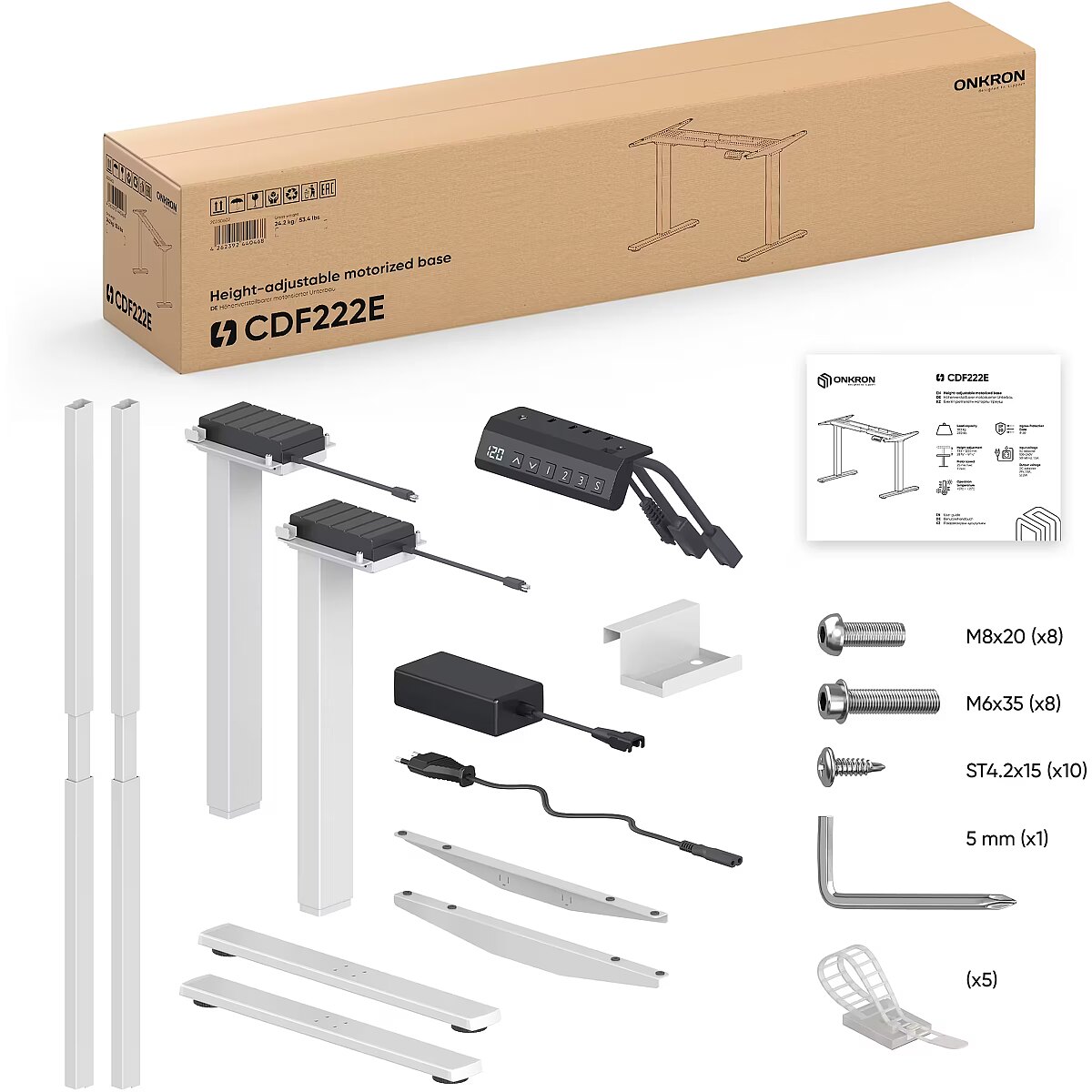 Onkron Desk Frame with Height Adjustment, White