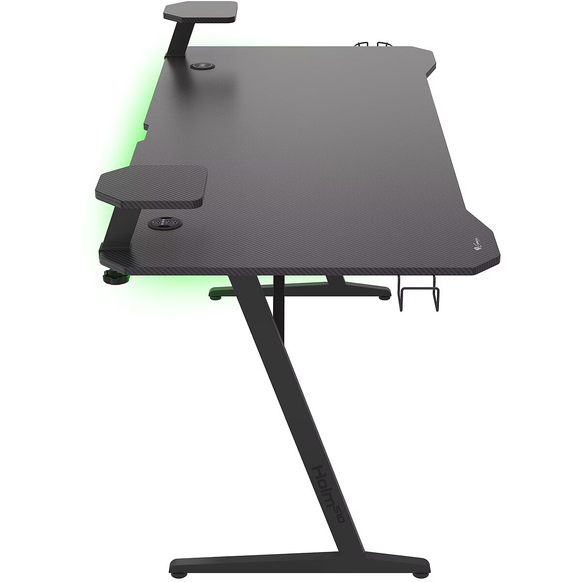 LongDesc - Genesis Holm 510 RGB is a professional gaming desk that will allow you to ergonomically manage your space. A large usable area and dedicated handles will provide space for all the necessary accessories, and the phenomenal RGB lighting will make your command centre gain a unique character. Meet Genesis Holm 510 RGB and create your dream gaming station!UNLIMITED SPACEThe desk is 160 cm long and 75 cm wide. Its dimensions guarantee a huge usable area on which you can put all the necessary accessories without limiting your movements in the game. Aesthetic carbon finish will allow you to perfectly match the desk to any room and add a touch of elegance. Choose comfort and originality with Holm 510 RGB!WINNING STYLEStand out on the battlefield with extremely effective RGB lighting. The included remote control allows you to control numerous modes and effects, thanks to which you can adjust the illumination to your preferences at any time. Set up bright, strong colours that will give you confidence and indulge in exciting gameplay, and when it's over, relax and regain strength in the company of soft colours. Create an atmosphere that will allow you to find yourself in another dimension and defeat your opponents in incredible style!ROBUST CONSTRUCTIONThe Genesis Holm 510 RGB desk has been designed with the needs of the most demanding players in mind. The metal structure will guarantee stability and durability, so you can be sure that the desk will remain in place, even during extremely dynamic movements.MASTER ORGANIZATIONProfessional gamers require advanced solutions. That is why the Holm 510 RGB desk is equipped with numerous dedicated shelves and holders that are removable and allow for installation in a convenient place. Shelves for loudspeakers, holders for headphones and a cup will save space on the countertop and arrange the space perfectly. Under the table, there is a cable organizer , thanks to which you will leave the cables hidden and provide them with a safe place to work.FUNCTIONALITY AND CONVENIENCEA wireless charger is placed on the surface of the table top, which will allow you to conveniently charge your mobile device and have it at hand at any time . The desk is also equipped with a hub with three USB 3.0 ports and cable glands, thanks to which you can easily connect the necessary equipment and organize cables. Forget about tangled cables and choose the maximum comfort with the Genesis Holm 510 RGB!