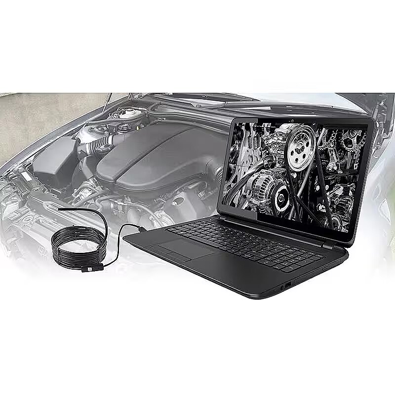 Description - Universal USB inspection endoscope  It will work in hard-to-reach places such as sewage pipes, ventilation ducts, interior of machines, engines, vehicles, etc.  A long (5m) and flexible connection cable will allow a small inspection camera (5,5mm) to be placed in a hard-to-reach place in order to obtain an image on a computer monitor or smartphone screen.  6 bright LEDs For a better preview effect, the camera is equipped with 6 bright LEDs with brightness adjustment on the cable.  OTG adapter from micro USB to USB A It allows you to use the endoscope on a computer as well as an Android smartphone. Application for mobile devices If you want to use ENDOSCOPE USB with a mobile device under the control of the system, download the free OTG Endoscope application from the Google PLAY store Computer software If you want to use ENDOSCOPE USB with a PC, install ViewPlayCap from the supplied CD or download it from here. IMPORTANT. The device running Android must be equipped with a USB OTG (HOST USB) socket. Additional accessories such as a mirror, a hook and a magnet can be attached to the probe.