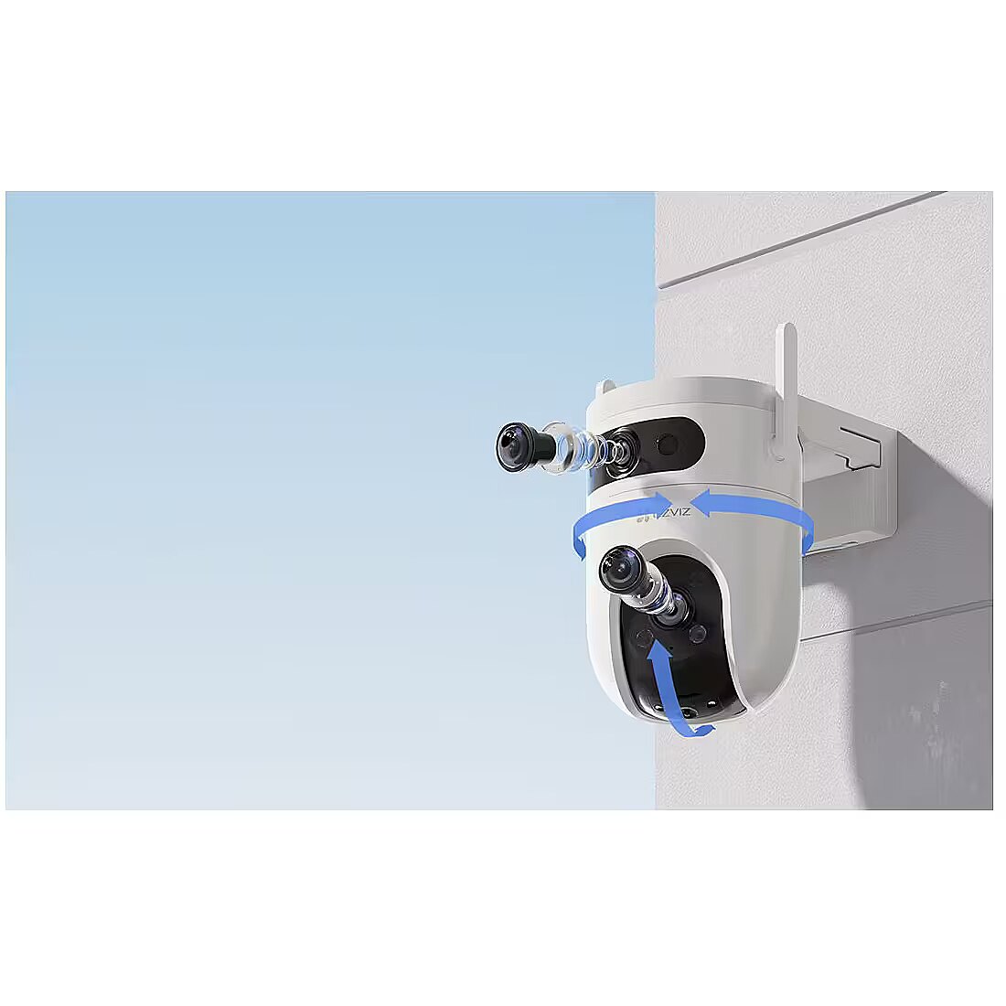 EZVIZ H9c Dual 3K kaamera kasutab kahte objektiivi, et pakkuda laia vaadet ja selgeid detaile. Ülemine lainurkobjektiiv ja alumine telefotoobjektiiv töötavad koos, et katta suuremaid alasid ja tagada, et igas suunas oleks näha olulised tegevused.