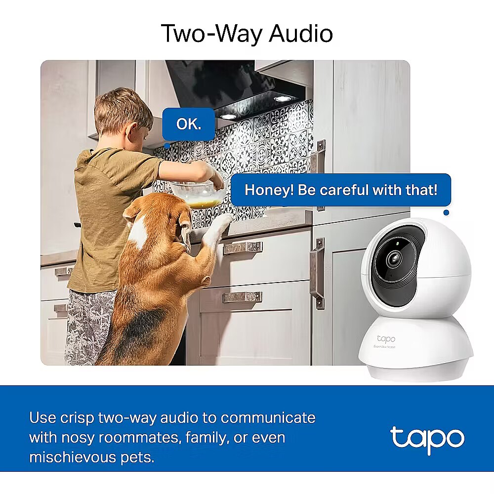 Save recorded videos on the microSD Card†(up to 512 GB) or by using Tapo Care‡ cloud storage services. Two-Way Audio