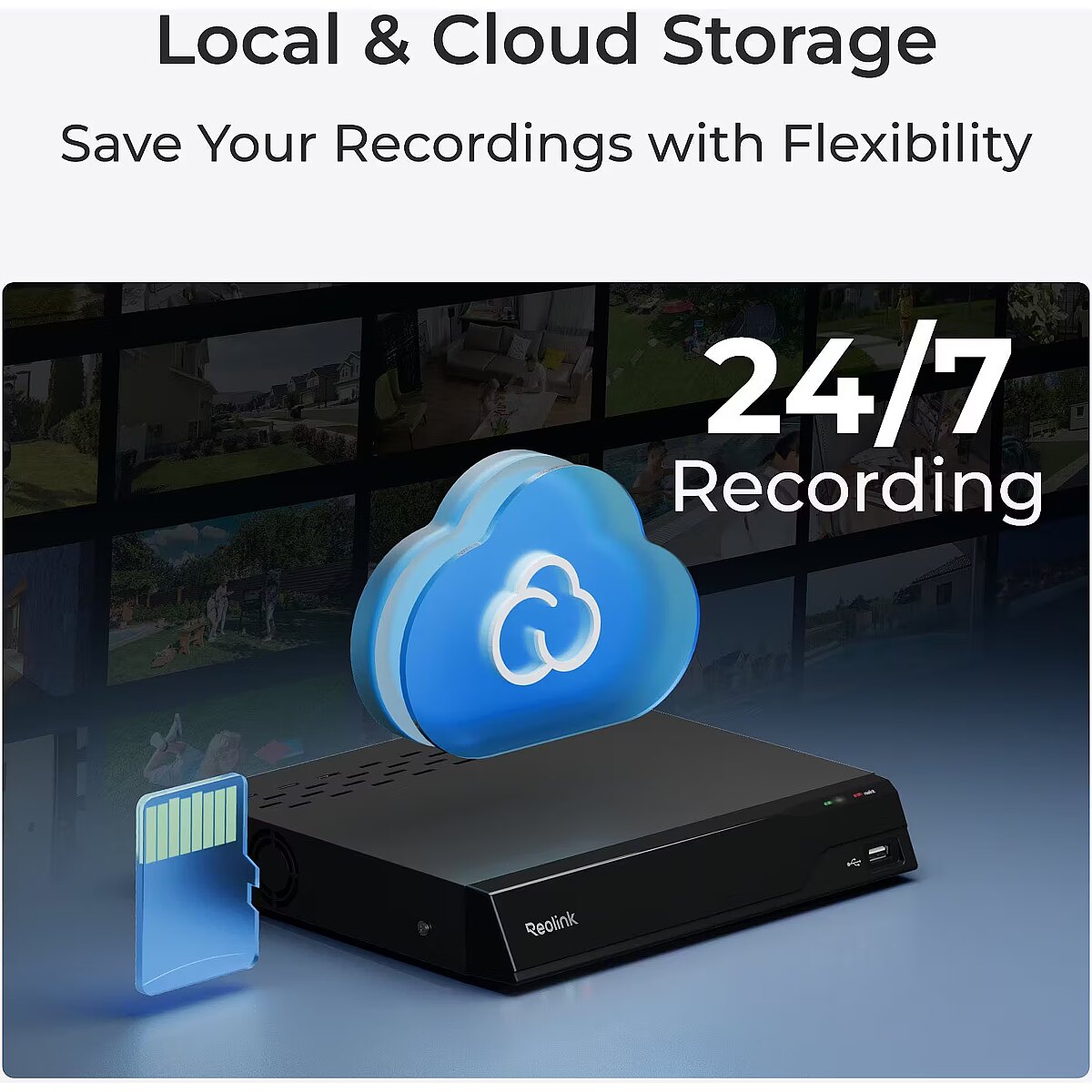 Salvesta liikumisest lähtuvaid klippe või pidevaid videosalvestisi hilisemaks esitamiseks. Sa ei jää kunagi ilma ühestki meeldejäävast hetkest, olgu see siis lapse esimene samm või üllatuspidu. Sisesta kuni 512 GB microSD-kaart ja jäädvusta kuni 16 päeva järjest pidevat salvestust vaikimisi bitikiirusega 3072 kbps. Isegi võrgukatkestuste ajal jääb sinu videomaterjal turvaliselt SD-kaardile salvestatuks. Ühenda oma E331 Reolink NVR-iga laiendatud kohaliku salvestusruumi saamiseks. Loo oma koduturvasüsteem ja salvesta turvaliselt ööpäevaringselt pidevaid salvestusi kuni 36 kaamerast. Laienda oma salvestusruumi ja naudi sujuvat ja tsentraliseeritud haldust Reolink Home Hubi või Home Hub Pro abil. Sisseehitatud AES-128 krüptimisega on sinu andmed turvaliselt kaitstud. Integreeri hõlpsalt oma FTP/NAS-süsteemiga, et tagada oma salvestiste ja piltide usaldusväärne varundamine. Kaitse oma privaatsust vaid ühe puudutusega