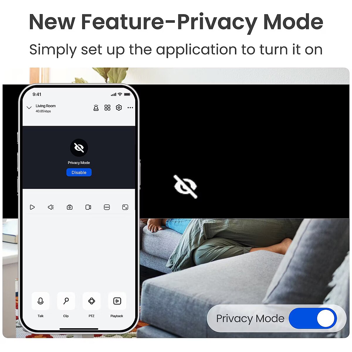 Lihtsa puudutusega saad oma kaamera ära pöörata ja hoida oma ruumi privaatsena. Privaatsusrežiimi abil saad jälgimise vaevata keelata, ilma et peaksid kaamerat vooluvõrgust lahti ühendama. WiFi 6 tehnoloogia, sujuv 4K voogesitus