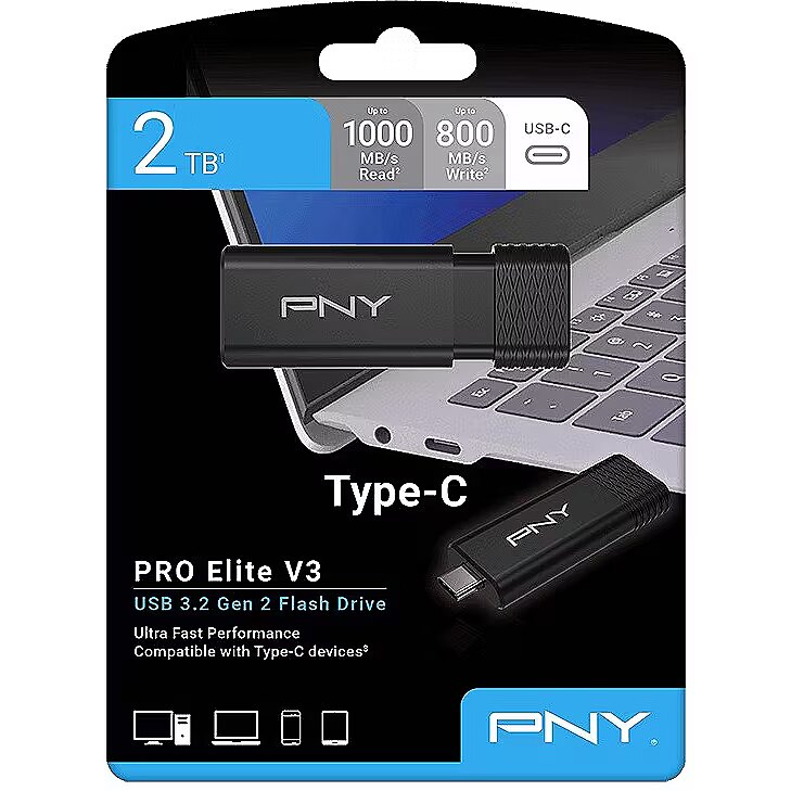 Description - ProElite V3 USB-C 3.2 PRO Elite V3 Type-C is the ultimate Type-C storage solution for professional creators, designers, & more! Built for extreme speed, boasting USB 3.2 Gen 2 technology with blazing speeds up to 1000MB/s read & up to 800MB/s write, 265x faster than standard USB 2.0! Enjoy maximum compatibly across mobile devices, laptops & desktops via the Type-C connector, to transfer & store large files faster than ever in a durable premium metal housing!