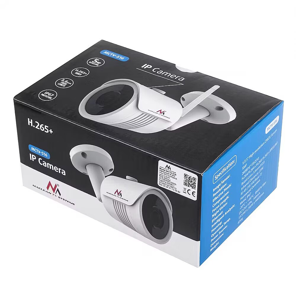 Accessories included - Original box Maclean MCTV-516 WiFi IP Network Camera User manual WiFi antenna Mounting kit (dowels, screws, RJ-45 cover, dowel installation template)