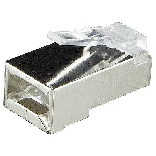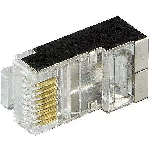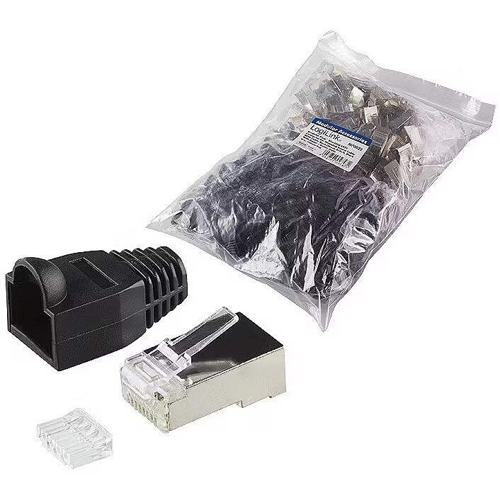 RJ45 plug connector for shielded Cat.6 cable For twisted pair 24-27 AWG With gold pins With guide plate and bending A set of 100 pieces each