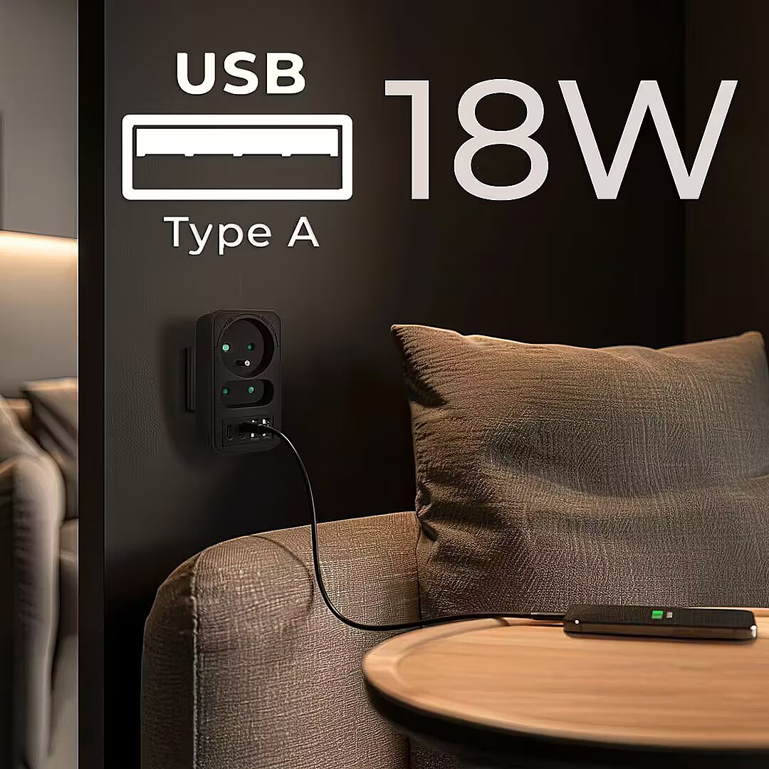 The integrated two USB Type-A ports with up to 3A (max. 18W) are perfect for charging accessories such as wireless headphones, power banks, Bluetooth speakers, and sports bands. In turn, two USB Type-C ports with Power Delivery technology (max. 20 W) ensure fast and stable charging of modern devices smartphones, tablets, portable consoles, and other devices that support the Power Delivery standard. With this combination, you can simultaneously power multiple devices with different power requirements without the need for additional chargers.