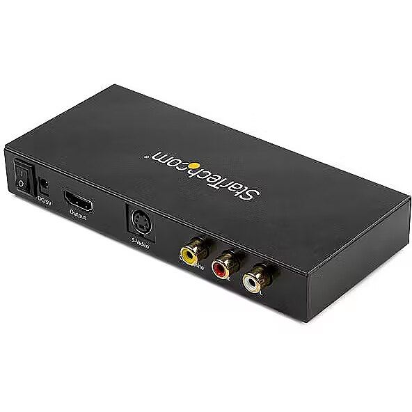 LongDesc - Analog to HDMI® Upscaler| Mac & Windows® | On-Screen DisplayThis S-Video or composite to HDMI® converter with audio lets you connect an S-Video or analog composite device, along with supporting RCA L/R audio, to your HDMI monitor or television.Hassle-Free Setup and Easy to Use Equipped with an on-screen display (OSD) menu and convenient selector switches for easy configuration, this compact S-Video or composite to HDMI video converter installs quickly and easily, for a true plug-and-play experience. Save on Upgrade CostsThis HDMI upscaler is able to function with both NTSC and PAL systems, and offers support for output resolutions up to 720p to seamlessly integrate with almost any display.By using this analog to HDMI converter you’ll be able to continue using your legacy equipment (video camera, DVD player, etc.) with your HDMI display or monitor, ultimately saving the costs of upgrading your equipment. It's ideal for boardroom settings, medical imaging and watching old home videos on your HD display or television.Support for AudioThis AV (audio video) converter box features an integrated RCA L/R audio connection that combines the audio and video inputs into a single HDMI output, avoiding the hassle of running a separate audio cable to your destination display.VID2HDCON2 is backed by a StarTech.com 2-year warranty and free lifetime technical support. The StarTech.com Advantage- Convert and upscale S-Video or analog composite input to HDMI video output- Features on-screen display for simple setting selections- Supports standard high-definition resolutions up to 720p