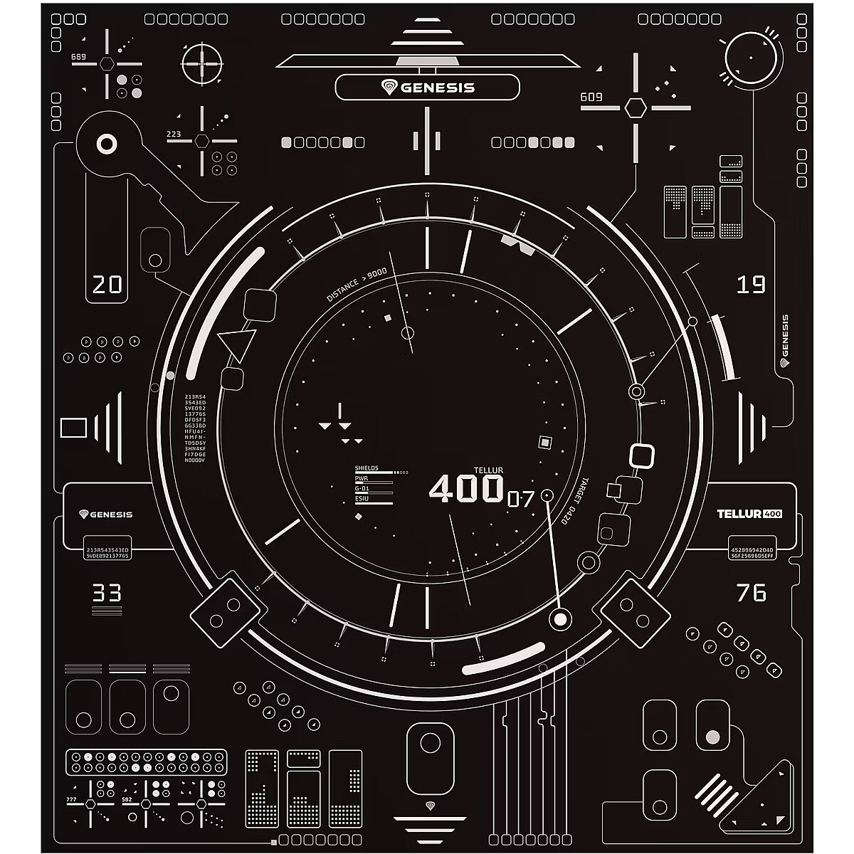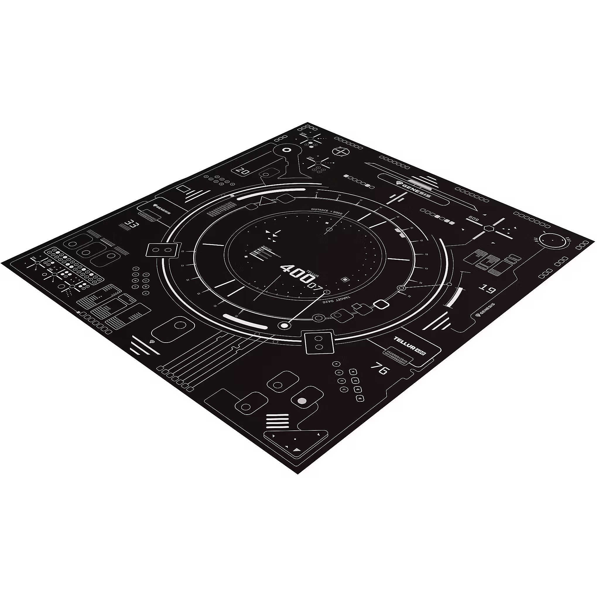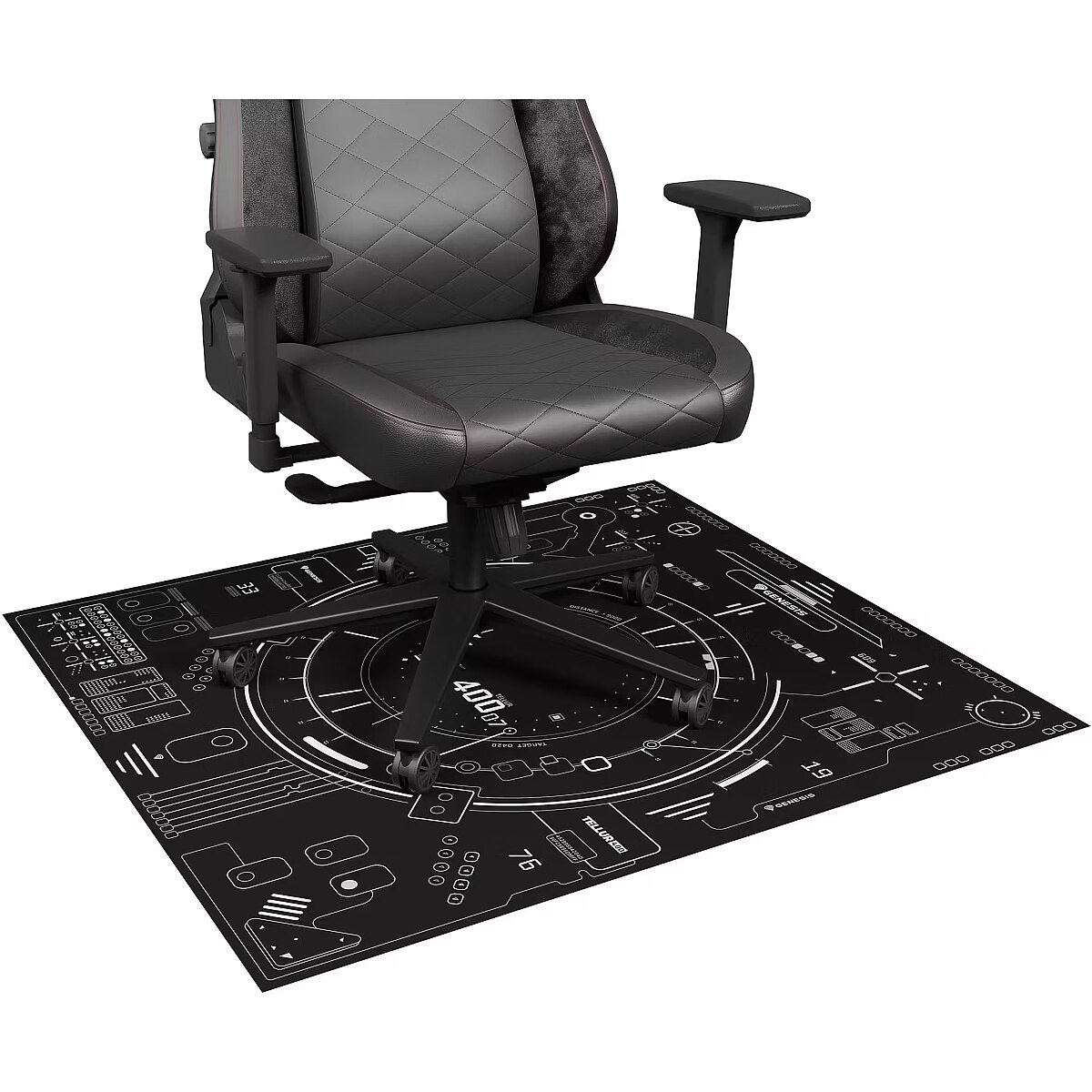LongDesc - FLOOR MATEquip your workstation with the Genesis Tellur 400 Square HUD - a specially designed floor mat for gaming chairs and office chairs that not only protects the surface from scratches, but also makes it easy to move your chair, all thanks to the soft material. Unique graphics and shapes? You can be sure that they will make it easy to incorporate the Genesis Tellur 400 Square HUD into your workstation.SURFACE SCRATCHES ARE NOW HISTORYForget about abrasions, scratches and cracks. Genesis Tellur 400 Square HUD is a special mat that we designed with the safety of your floor in mind. What's more, the protective qualities of the soft fabric are not the only advantage. You can also count on its durability and freedom to move your chair from place to place - all without much resistance. Get the most out of your chair with the Genesis Tellur 400 Square HUD.LARGE AREALarge mat surface = more space for you and fewer scratches on your floor. As much as 110 cm in length and 100 in width will take care of your comfort whether you are conducting a quiet game or participating in a dynamic clash.DURABILITY FOR YEARSGenesis Tellur 400 Square HUD is a mat that you will really spend a lot of time with. Durable fabric, a non-slip underside for stability, and a surface that - even if there is dirt - you can clean without any risk.STYLE? WE KNOW SOMETHING ABOUT ITLooking to change things up in your workstation? The Genesis Tellur 400 Square HUD is the perfect addition to any space, all thanks to its unique design and rectangular shape. Stylish and functional - that's what the Genesis Tellur 400 Square HUD is.