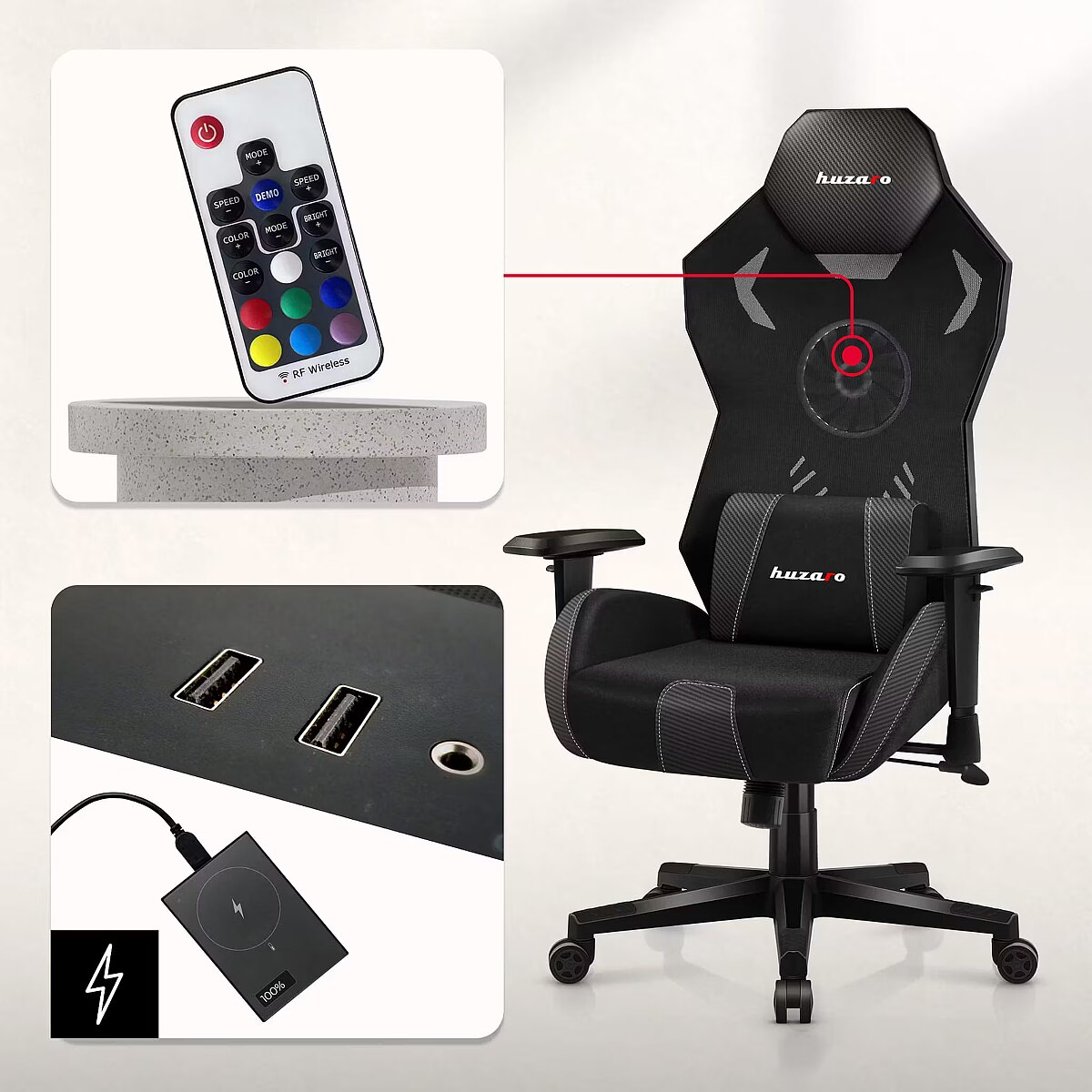 Dane techniczne: Inne cechy - podświetlenie RGB | pilot | poduszka lędźwiowa
