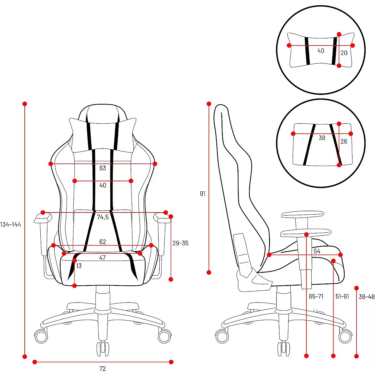 Dane techniczne: Wysokość oparcia - 91 cm