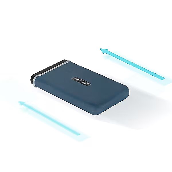Description - So fast it's astounding! Transcend's ESD370C portable solid state drive features palm-sized portability, an aluminum alloy, an elegant, navy blue silicone rubber case that's durable, ruggedized and shock-resistant, a USB 3.1 Gen 2 interface for next-level transfer rates, and a USB Type-C port, bringing you never-before-seen speeds of up to 1,050MB/s.
