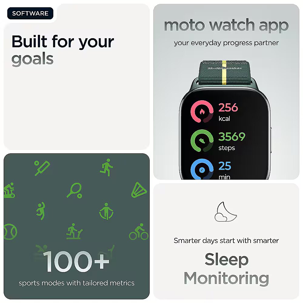 Title - Motorola moto watch fit 4.83 cm (1.9") OLED 44.5 mm Digital Touchscreen Green, Grey GPS (satellite)