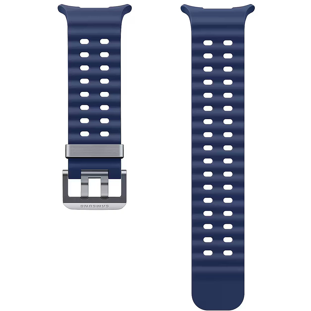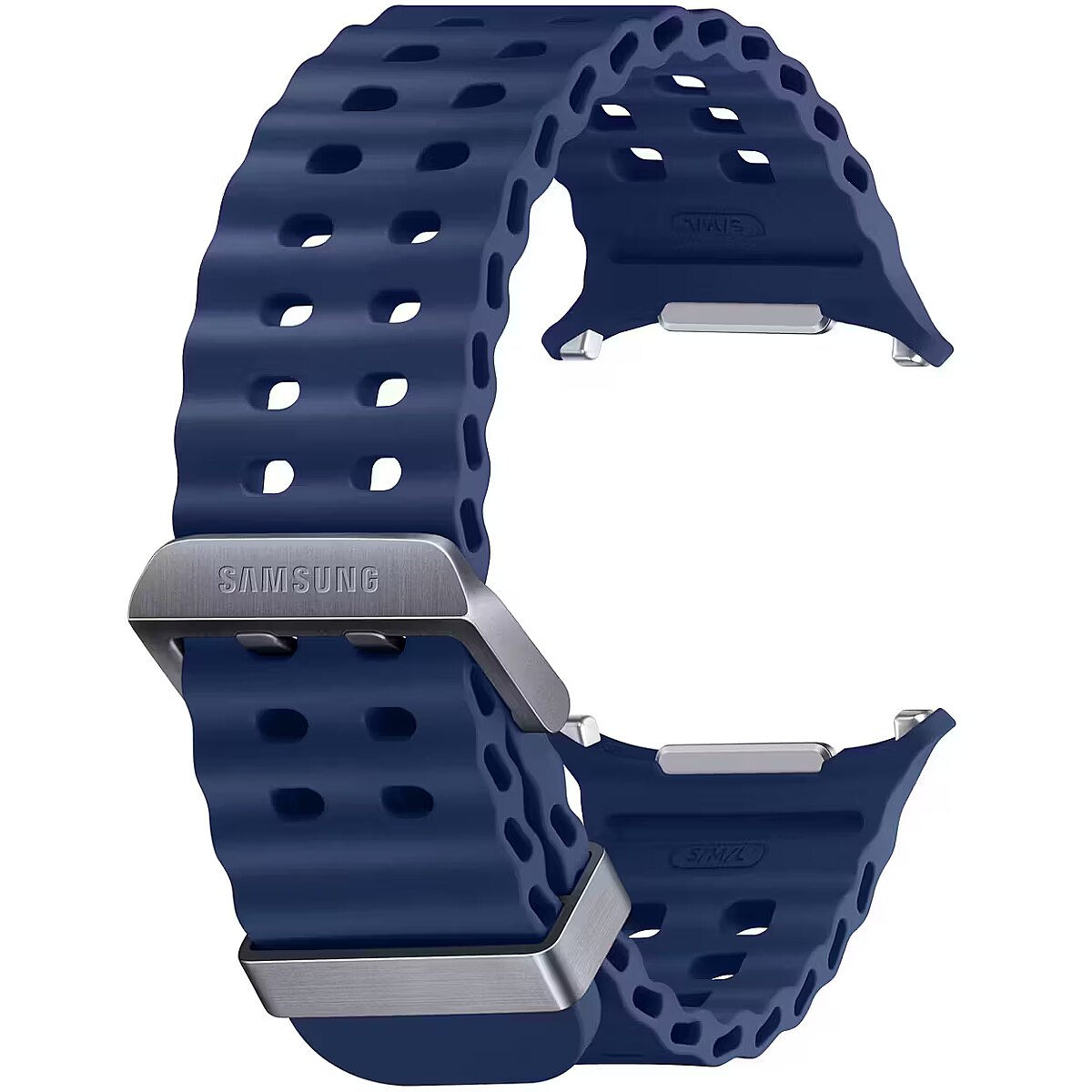 LongDesc - Elevate your performanceThe Galaxy Watch Ultra Marine Band is crafted to meet the performance standards of the new Galaxy Watch Ultra. Designed for water swimming, its titanium buckle is light and durable. With a wide ripple design for easy water drainage and quick sweat drying, conquer water activities without worries.Fit for comfort. Fit for durability.The Galaxy Watch Ultra Marine Band features a lugless design that seamlessly blends with the watch body, ensuring a sleek look and a snug fit, especially during intense activities. Switching and customising bands is effortless with the one-click button on the watch body, eliminating any complex steps.
