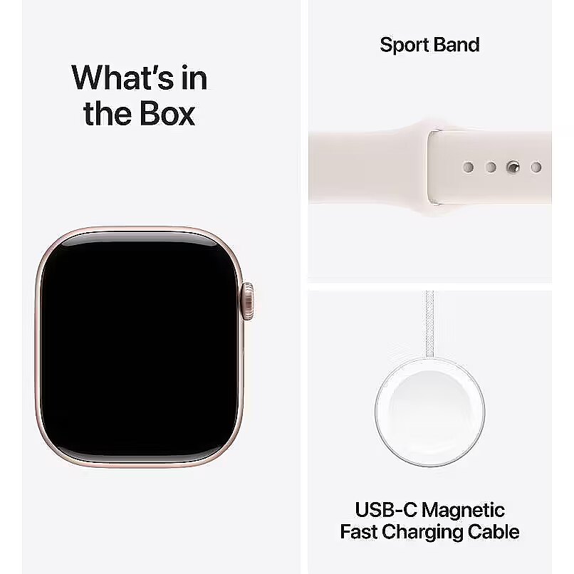 description_en - Apple Watch 11 keeps pace with your life and keeps an eye on your health. Designed to be worn 24/7: The watch design is thinner and lighter, yet more durable than before — aluminum models now have Ion-X glass, which is 2x more scratch-resistant. Watch 11 brings important health updates like hypertension alerts and improved sleep assessment and longer battery life — all intelligently synced with your iPhone. Comprehensive health tracking: ECG, blood oxygen level, sleep analysis with sleep score, and high blood pressure notifications to help detect signs of chronic high blood pressure. Sensitive sensors: Dual combined heart rate sensors, blood oxygen sensor, temperature sensor, accelerometer, gyroscope, altimeter, and depth sensor up to 6 m. They enable more detailed fitness and health data. Battery lasts up to 24 hours of regular use and up to 38 hours in low power mode Fast charging — up to ~8 hours of use in 15 minutes and ~80% charge in just ~30 minutes Always-On Retina OLED LTPO3 display with up to 2000 nits peak brightness Ion-X glass with new ceramic coating is 2x more scratch-resistant Waterproof to 50m and dustproof to IP6X New watchOS Workout Buddy and additional workout views, Heart Rate Zones, customizable workouts, running and cycling metrics, automatic course splitting, swimming features (SWOLF, stroke detection), multisport support Connectivity and security: GPS, Bluetooth 5.3, WiFi 2.4/5 GHz, Ultra Wideband chip, Apple Pay, Emergency SOS, fall and accident detection, and Backtrack navigation Faster hardware and storage: powerful processors and larger internal storage ensures smoother operation and longer software support Eco-friendly design: the watch is made from up to 40% recycled material 100% recycled aluminum Health Know your body by heart.