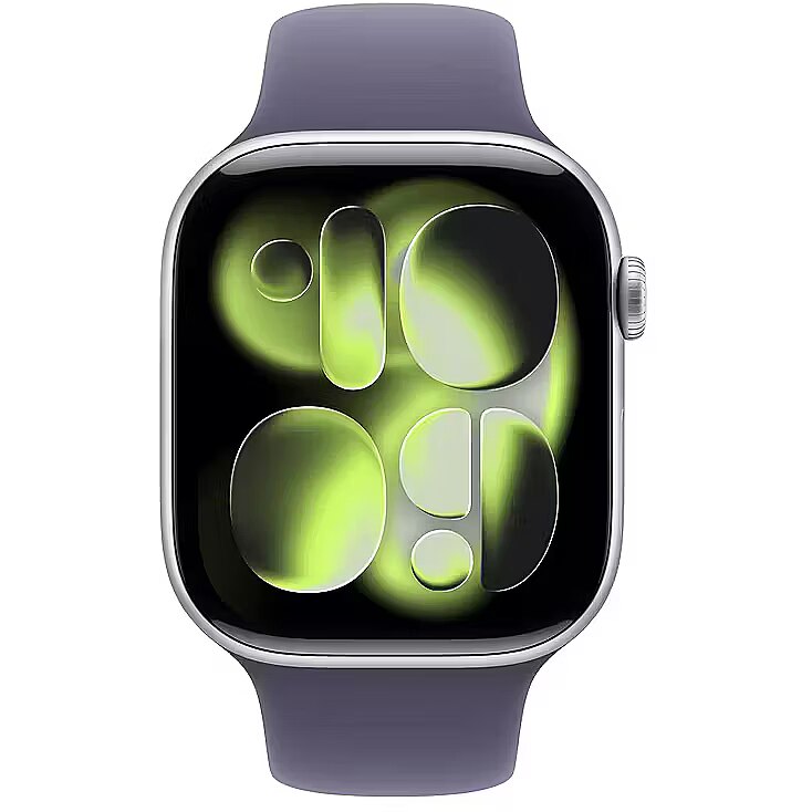 Apple Watch Series 11, GPS, Silver Aluminium, Purple Fog Sport Band (M/L) - 46mm