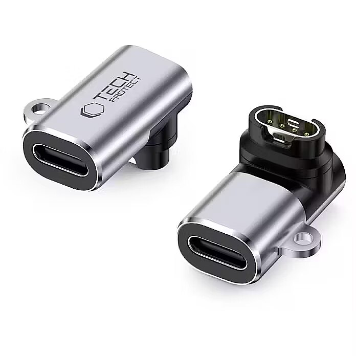 description_en - The Tech-Protect UltraBoost adapter makes charging Garmin sports and smartwatches easy and convenient, allowing you to use any USB-C cable for charging. The adapter is compatible with all Garmin watches that have a special Garmin connector for example all newer Venu, vivoactive, fenix, Instinct and Forerunner series models. The compact and lightweight adapter is made of durable aluminum alloy, and its angled connector makes the connection more convenient and protects the cable from damage, especially in tight spaces. The adapter provides stable 5 W of power (5 V/1 A) and supports fast data transfer in the USB 2.0 standard up to 480 Mb/s. Thanks to its practical and portable design, the adapter is perfect for both home use and taking with you on the go. USB-C adapter for Garmin sports watches and smartwatches Allows you to charge your watch with any USB-C cable Angle connector Data transfer rate up to 480 Mbps Charging power: 5 W (5 V/1 A) Compact, lightweight and portable Easy to use in any situation