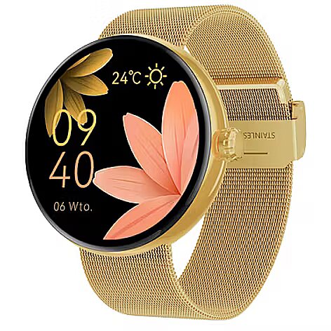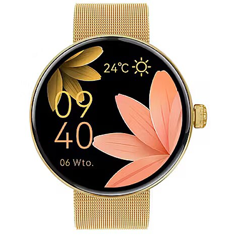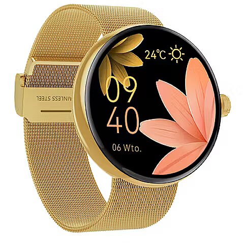 Key Features: Brand: Forever Model: ForeVive 5 SB-365 Color: Gold Display: 1.85", touchscreen, color Resolution: 240 x 280 pixels Bluetooth: version 5.0 Compatibility: Android 8.0+, iOS 12.0+ Water resistance: IP68 Strap material: Silicone Weight: 50 g Mobile app: Forever Smart Functions: Time and date display Heart rate monitor Sleep tracking Step counter Calorie counter Call and message notifications Sports modes Menstrual cycle calendar Blood oxygen level monitor Customizable watch faces Battery: Capacity: 200 mAh Charging time: approx. 2 hours Usage time: up to 10 days
