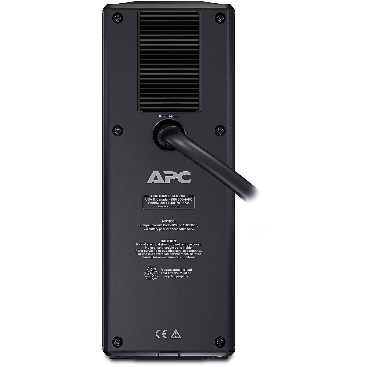 LongDesc - The Back-UPS Pro BR24BPG UPS (sold separately) provides instant battery power to your critical electronics when the power goes out, reducing risk of damage and keeping you connected and available both personally and professionally. When power availability is of the utmost importance, the BR24BPG Extended Run Battery Pack keeps your computer, network, or gaming systems running longer during a power outage. The BR24BPG features four 9Ah 24-volt batteries to complement the BR1500G’s two. Adding this extended run battery pack to your Back-UPS Pro system dramatically increases total runtime for added convenience and peace of mind. The BR24BPG is the perfect match for the BR1500G UPS. A heavy-duty connector links the two, and the BR1500G automatically recharges the additional UPS battery pack. Complementary styling ensures a consistent look. The BR24BPG UPS battery pack is covered by a two-year limited warranty. Package Contains APC BR24BPG Extended Run Battery Pack for Home UPS and user manual.